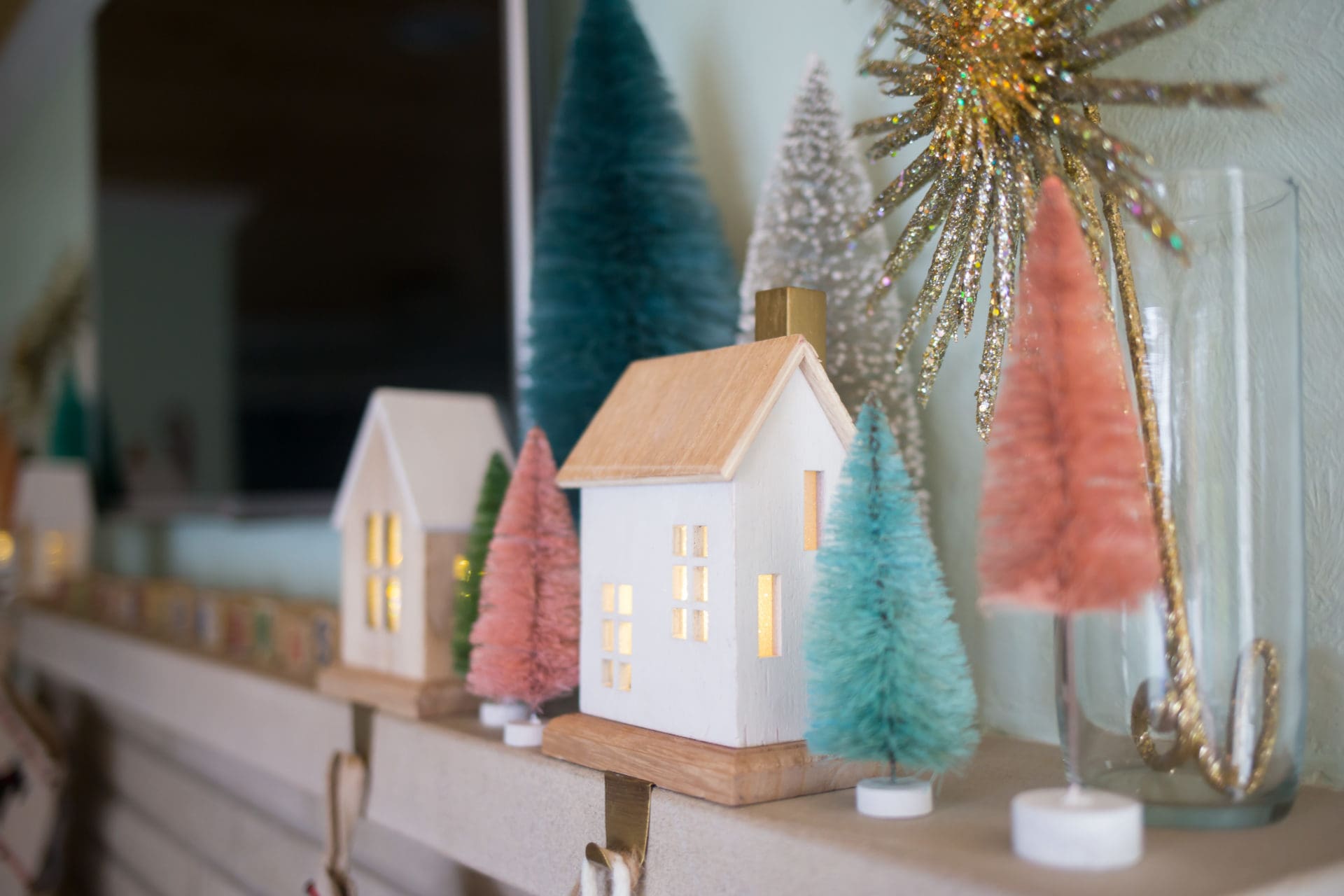 Light Up House Stocking Wood // Light Up House Stocking White // Bottle Brush Trees
