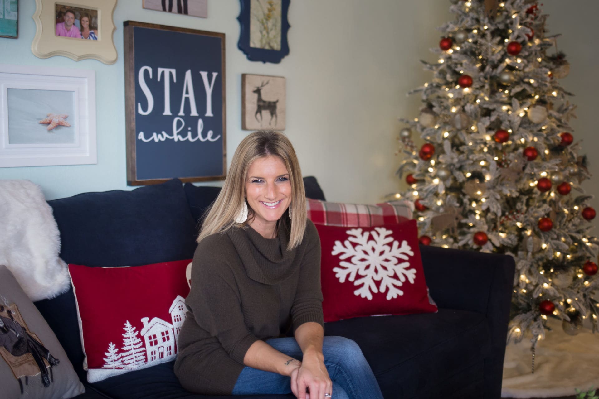 I know, I know. It’s not even Thanksgiving yet, however, if there is ever a time for a house to shine, it’s once Christmas explodes all over it. I decided to decorate a wee bit earlier than normal this year and I gotta say, I am not one bit upset about it. This year I found my way into the aisles of Target on several occasions [all Chip and Joanna Gaines fault] which inspired me to add a few new pieces to our Christmas decor mix. On a whim, I also decided after ten years of having the same ornaments on our tree that I was sick of them and it was time to revamp our look. Our home took on more of a traditional Christmas vibe this year with all things red, gold and a few earthy colors and it has to be the best I’ve ever felt about it. Today, I thought it would be fun to invite you all on a little Christmas home tour of sorts. Come on in, make yourself comfortable and stay until the very end because I promise, it will be worth your wait 😉