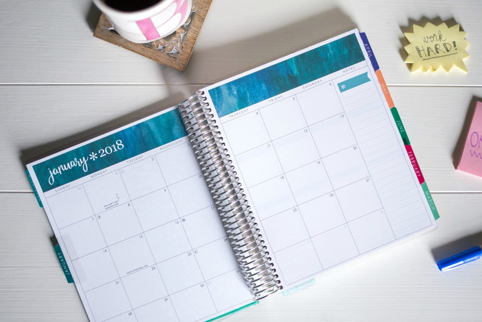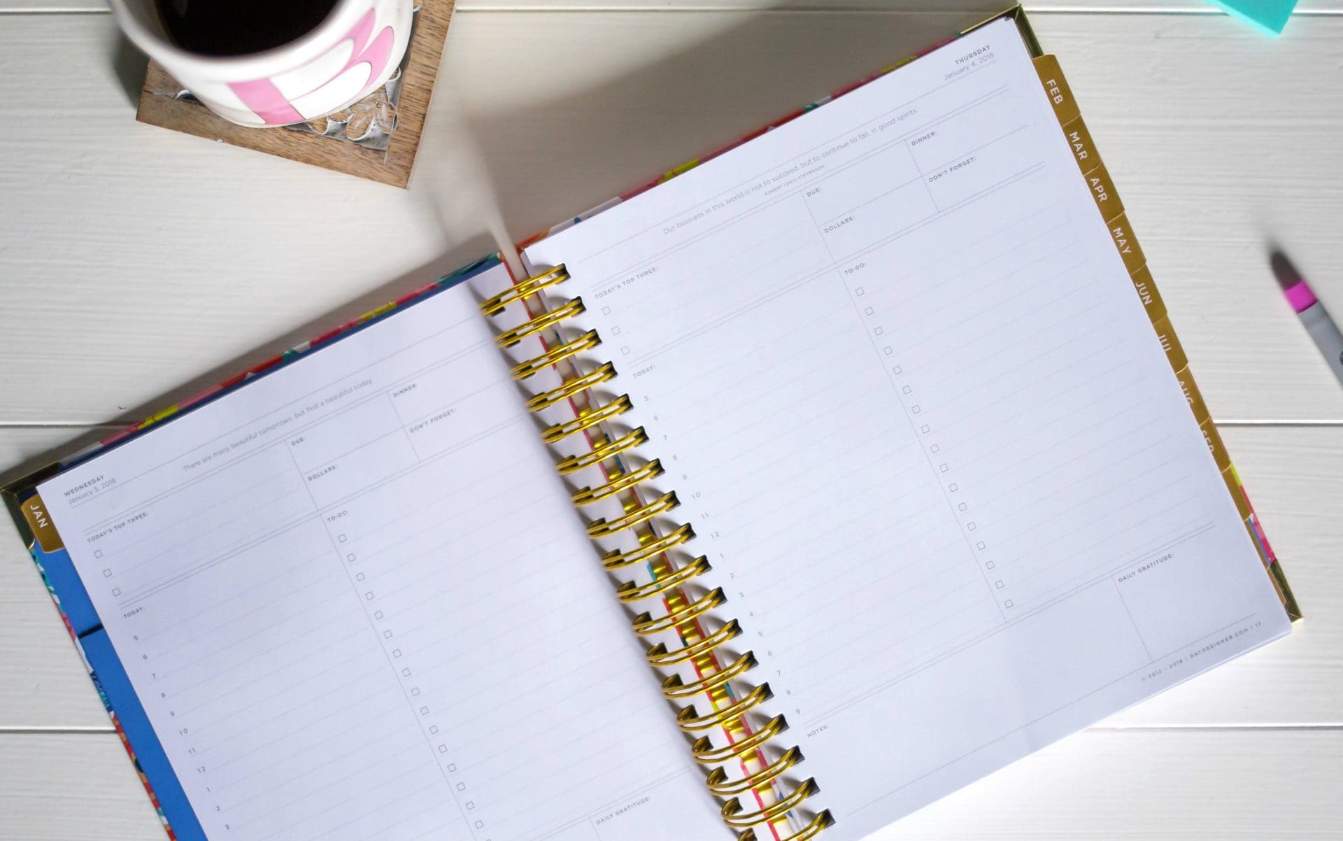 This planner is the most similar to The Day Designer that I have been using for years. The biggest difference to me is the size and weight [this one smaller and lighter] which is nice for carrying around and the pages are thicker on this one. It doesn’t have all of the bells and whistles as The Day Designer, but it has everything I need. This is the planner I decided to order for 2018!