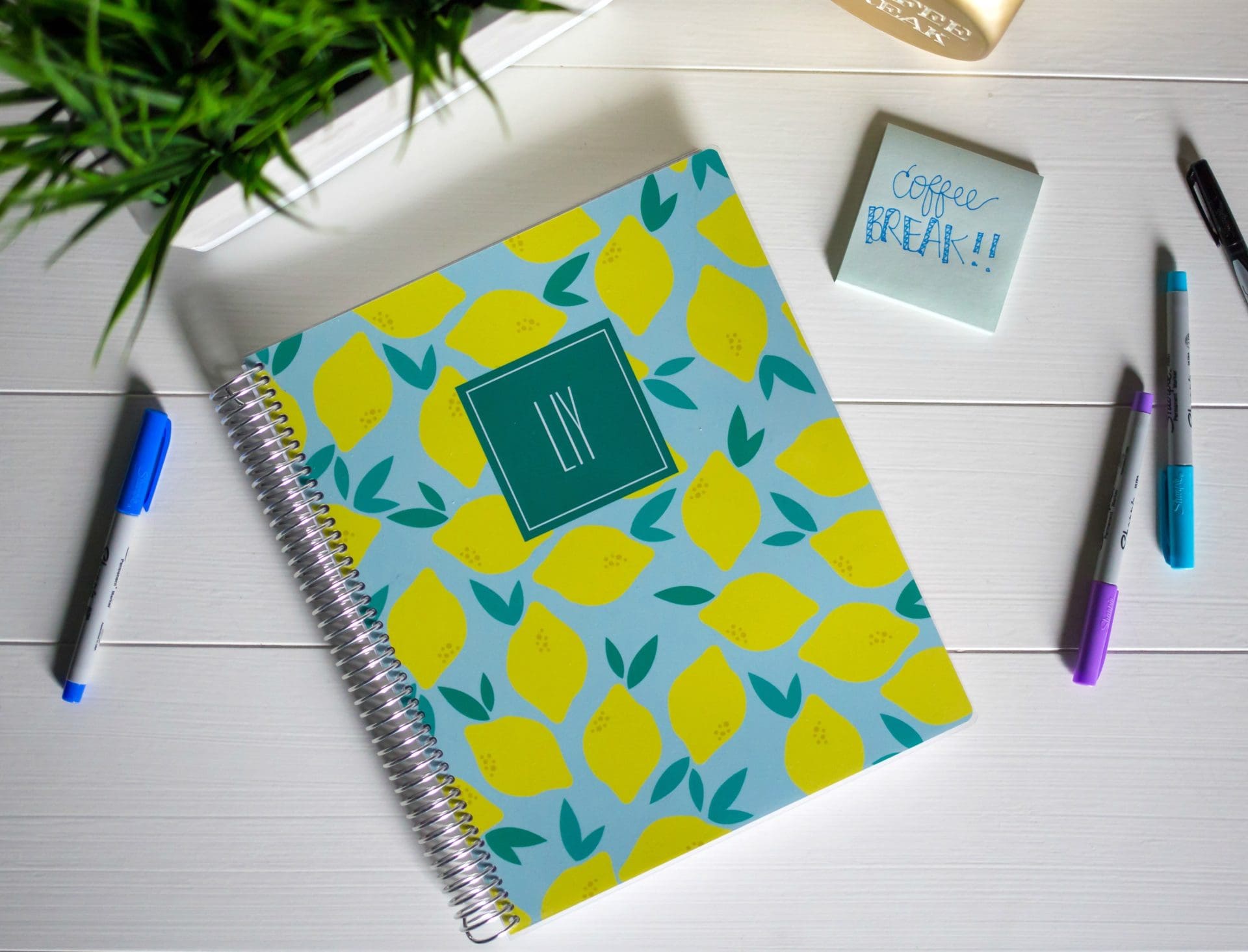 - This planner is available in a TON of different colorful cover options (all of which are laminated which means spilled coffee doesn’t become an issue!) and does have the ability to be customized and personalized at no additional cost which is awesome.
