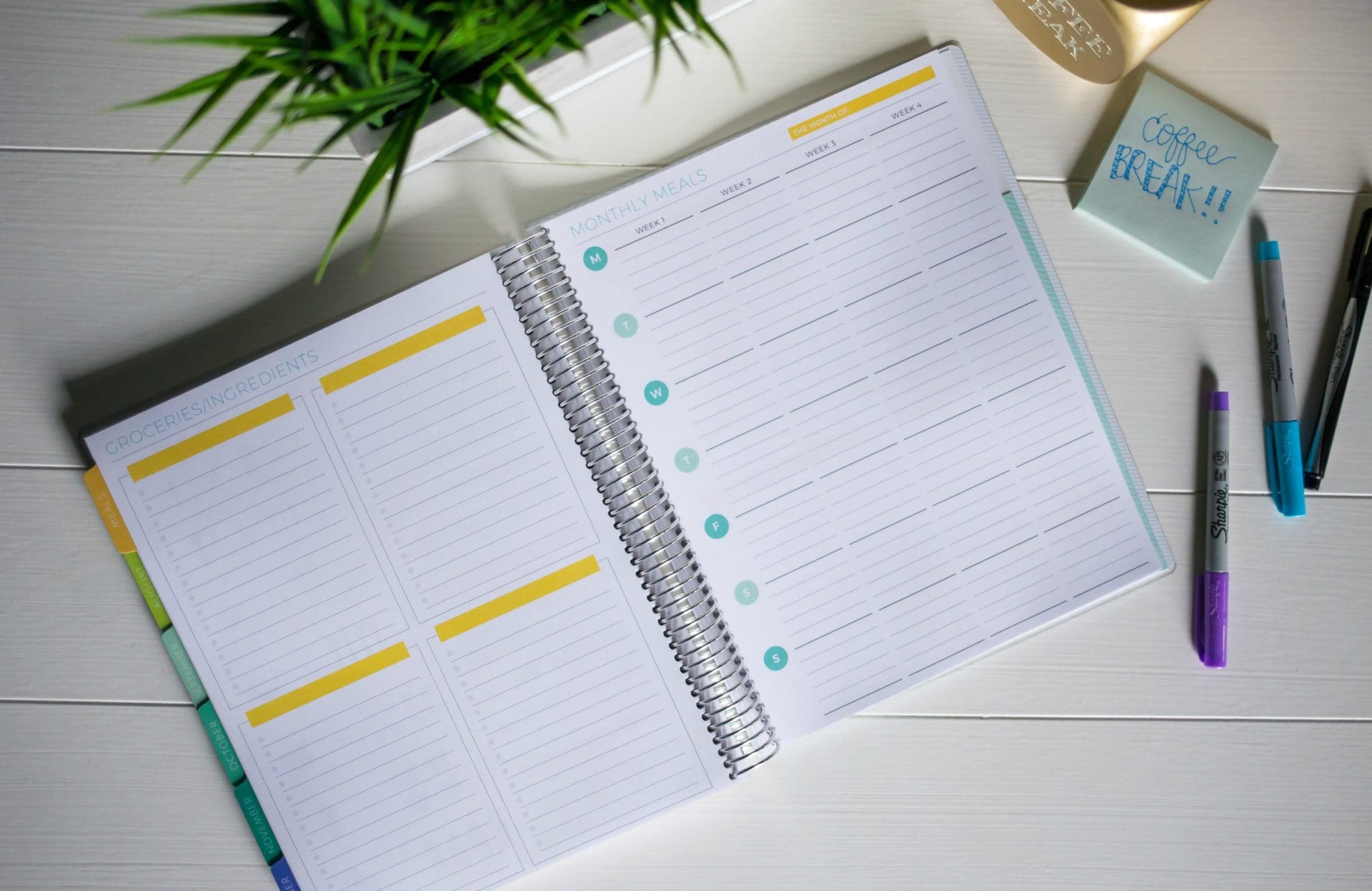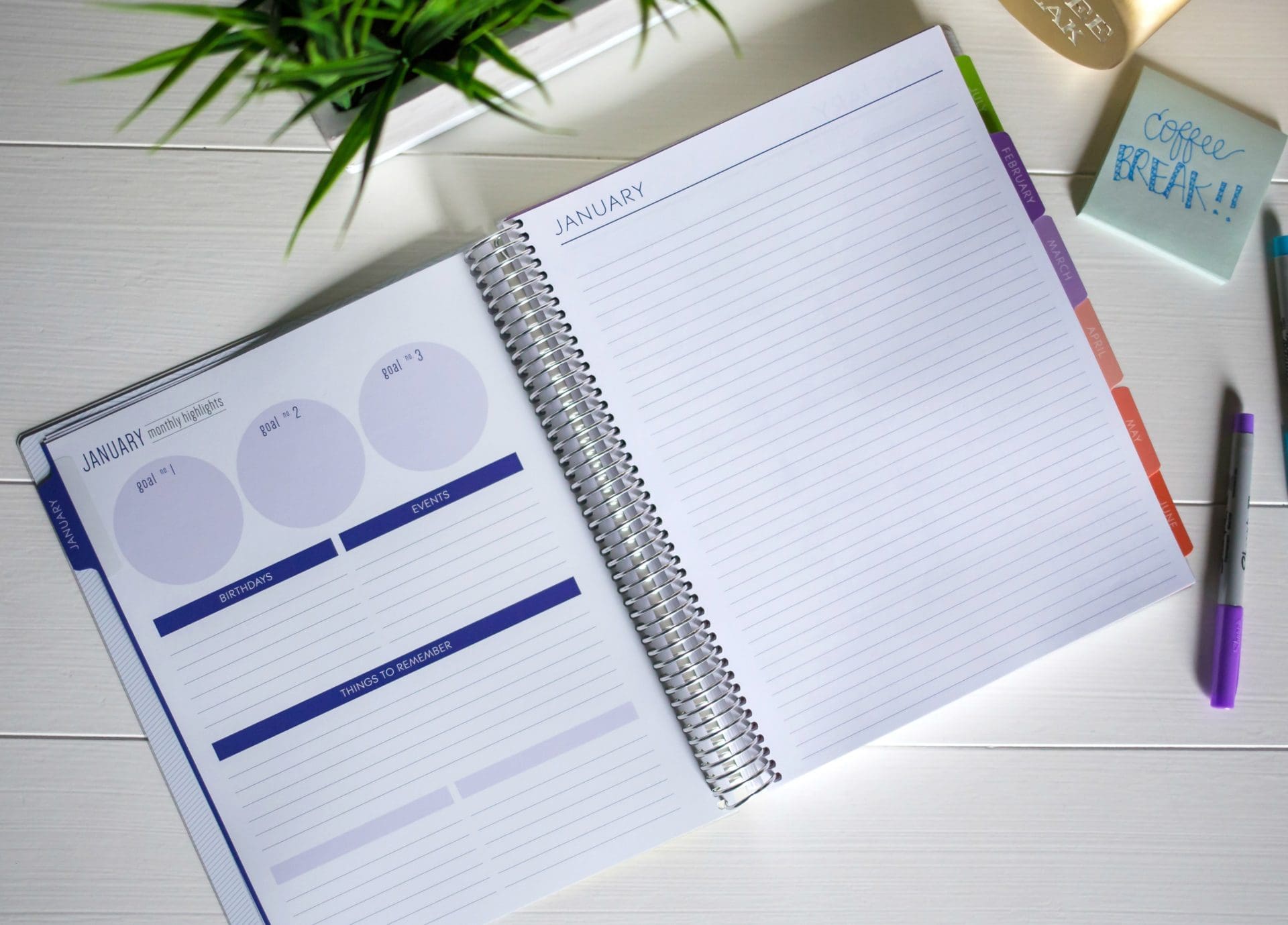 - At the beginning of the planner, there are a few pages to write down special dates and ideas, plans or goals.