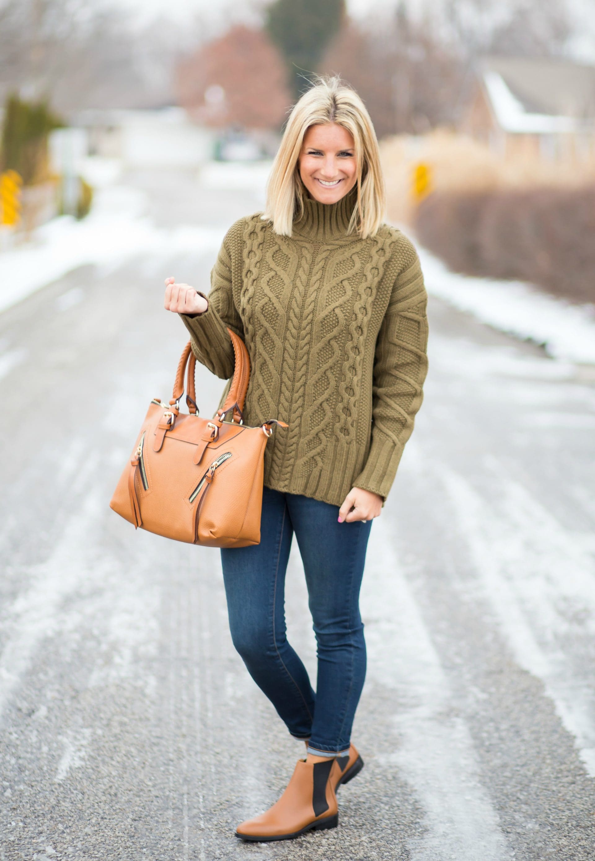 sweater // bag // boots // jeans