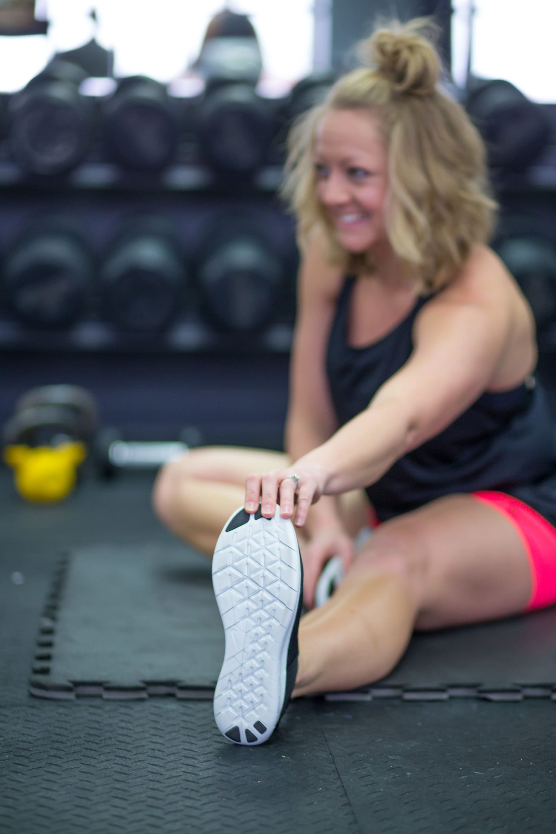 Amy’s outfit: Nike Breathe Women’s Training Tank // Nike Pro Women’s 3″ Training Shorts // Nike Alpha Women’s High Support Sports Bra // Nike Free RN Commuter 2017 Women’s Running Shoe