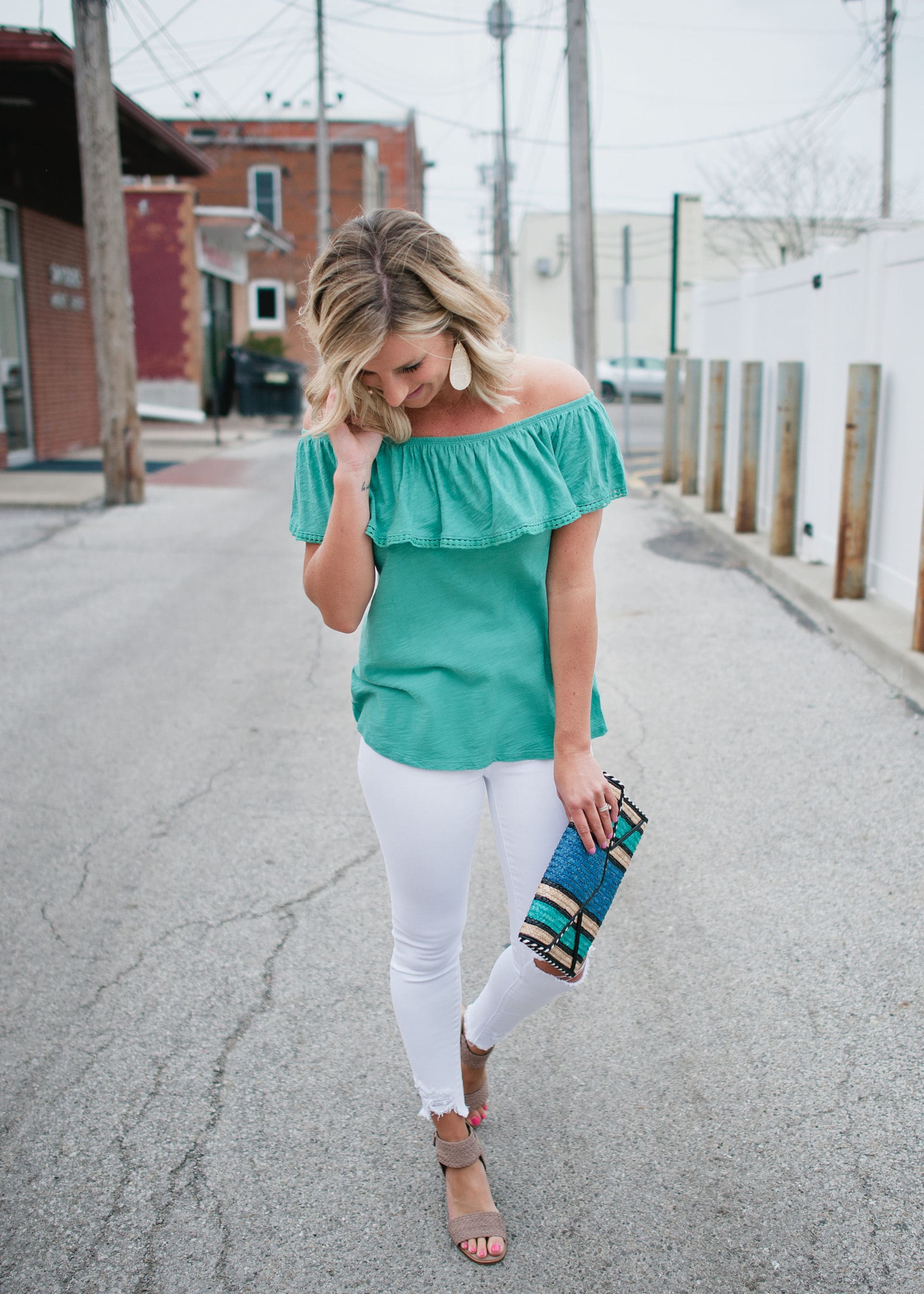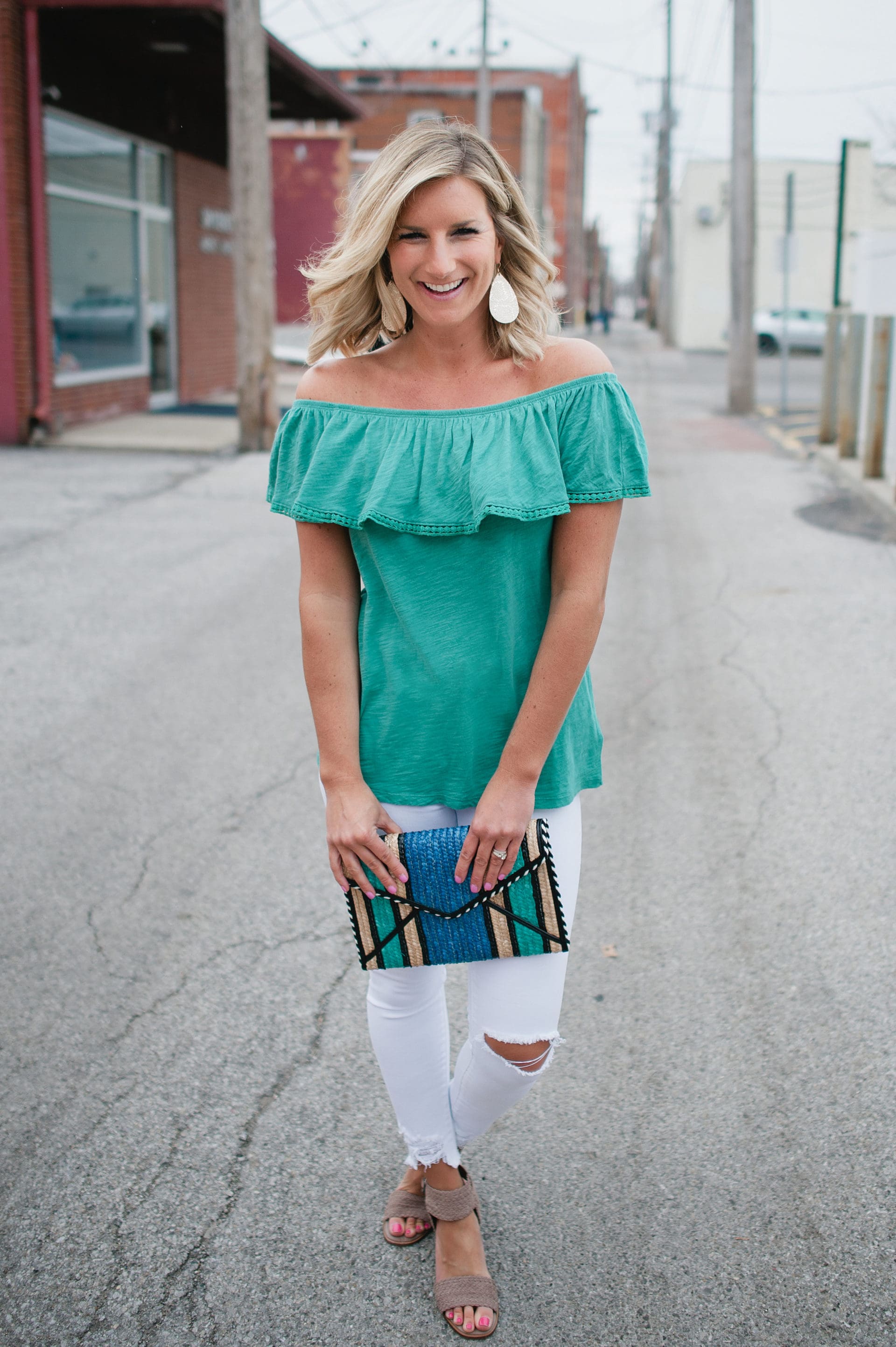 top [true to size, wearing in small] // white jeans [true to size] //shoes [true to size] // clutch // leather earrings [wearing in size medium]And that concludes the LIY Color Challenge! Who’s ready to wear a little color and brighten up their lives with us?! Don’t forget to use the hashtag #LIYColorChallenge for your chance to be featured and/or win a fun little goodie from us! Here’s to stepping out of our comfort zones and living that colorful life! Ready, set, GO!