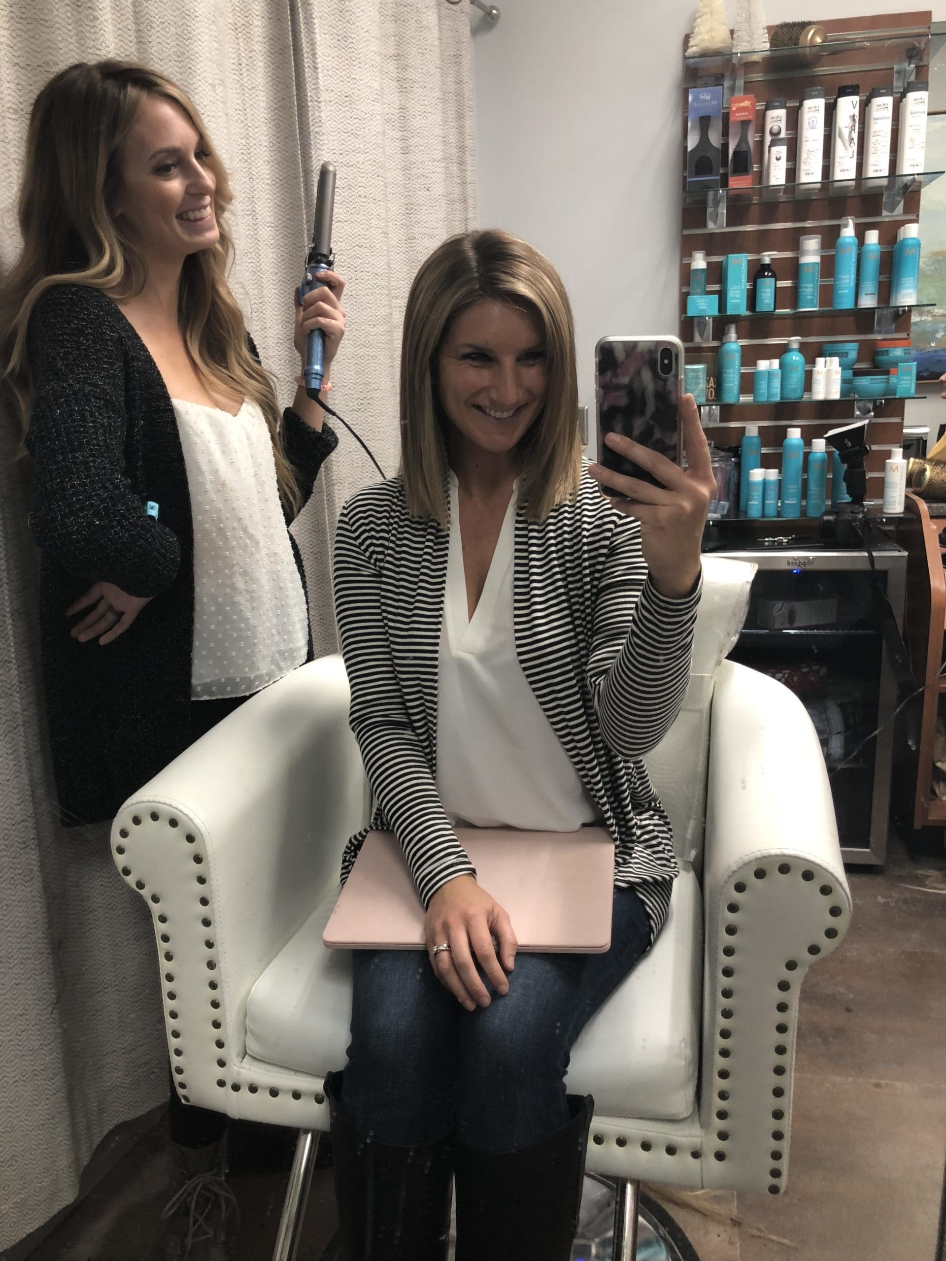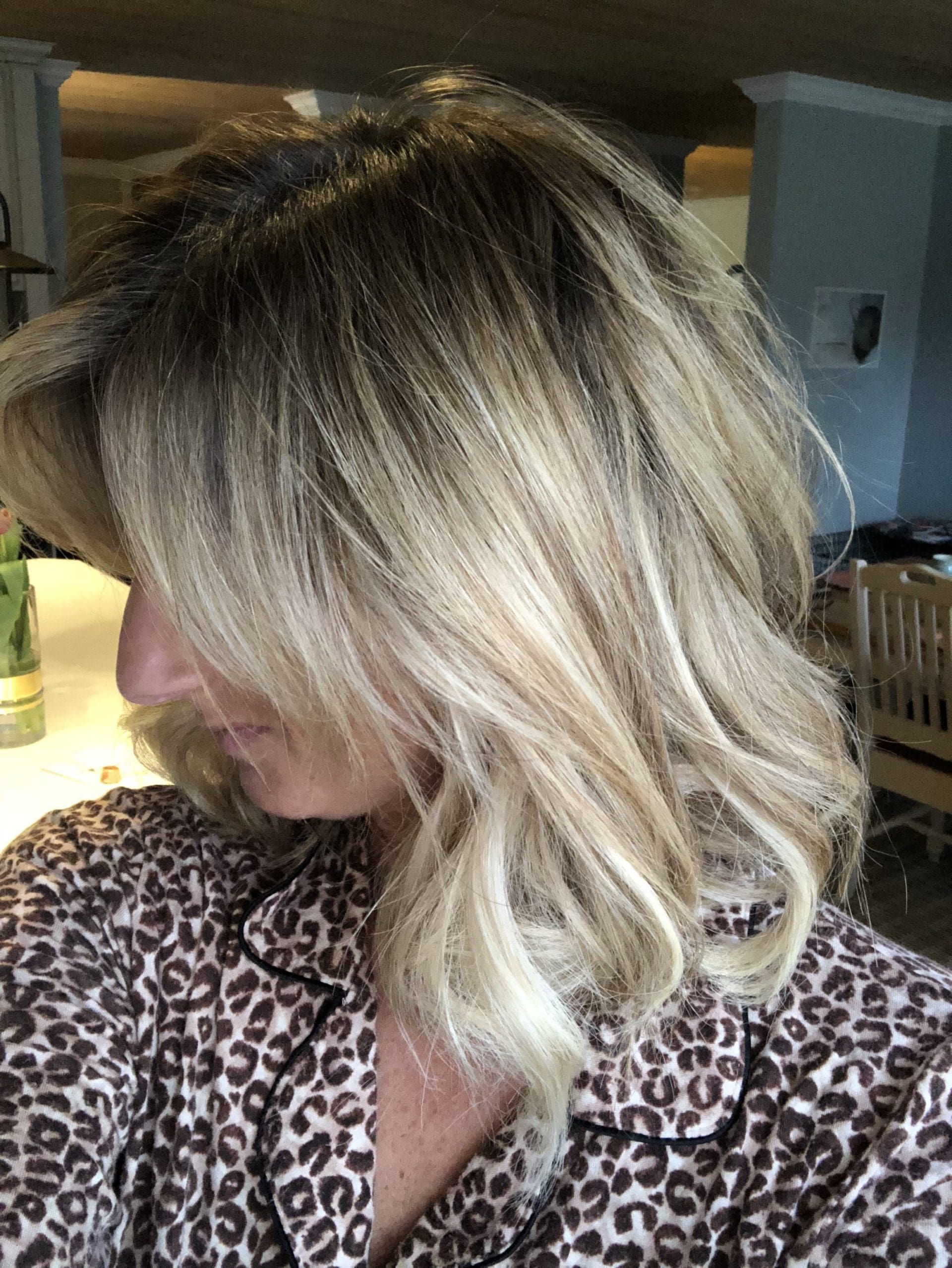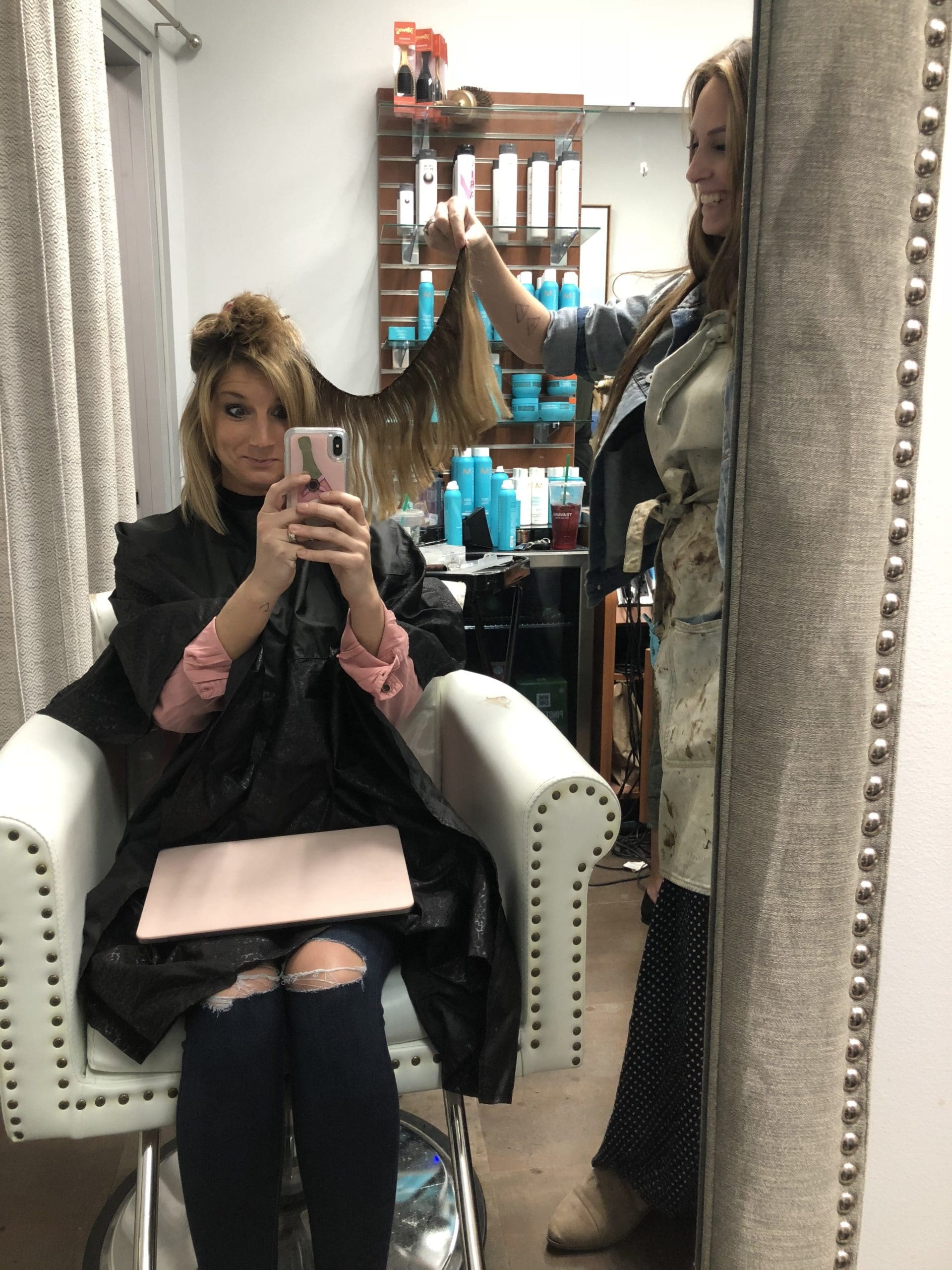I’ll walk through all of the maintenance and some other items later, but for starters let’s show the initial install appointment and how that went. I have been asked how long it takes to have them installed – for my initial appointment it was around four hours and that included getting my hair colored, extensions put in and cut. ps. If you are local, absolutely check out Amy Nedderman Hair as she is crazy talented. Here’s what my hair looked like pre-extensions and color.