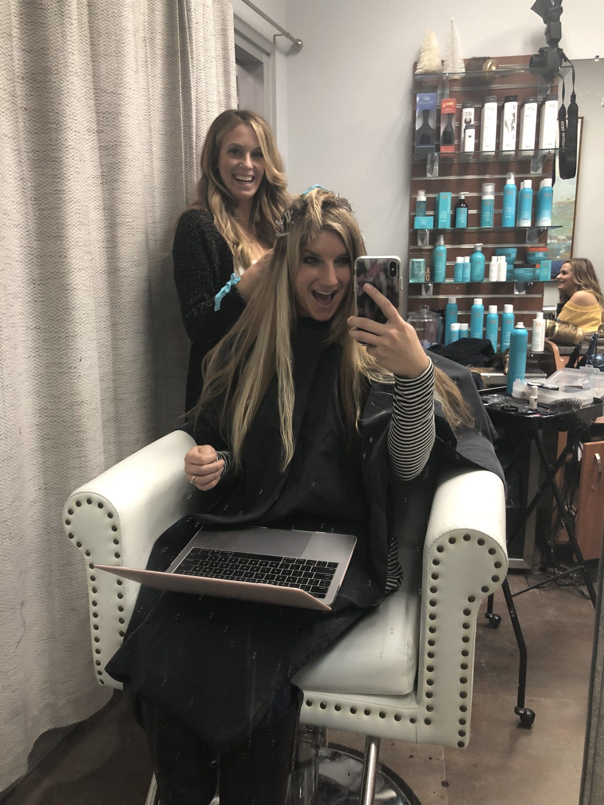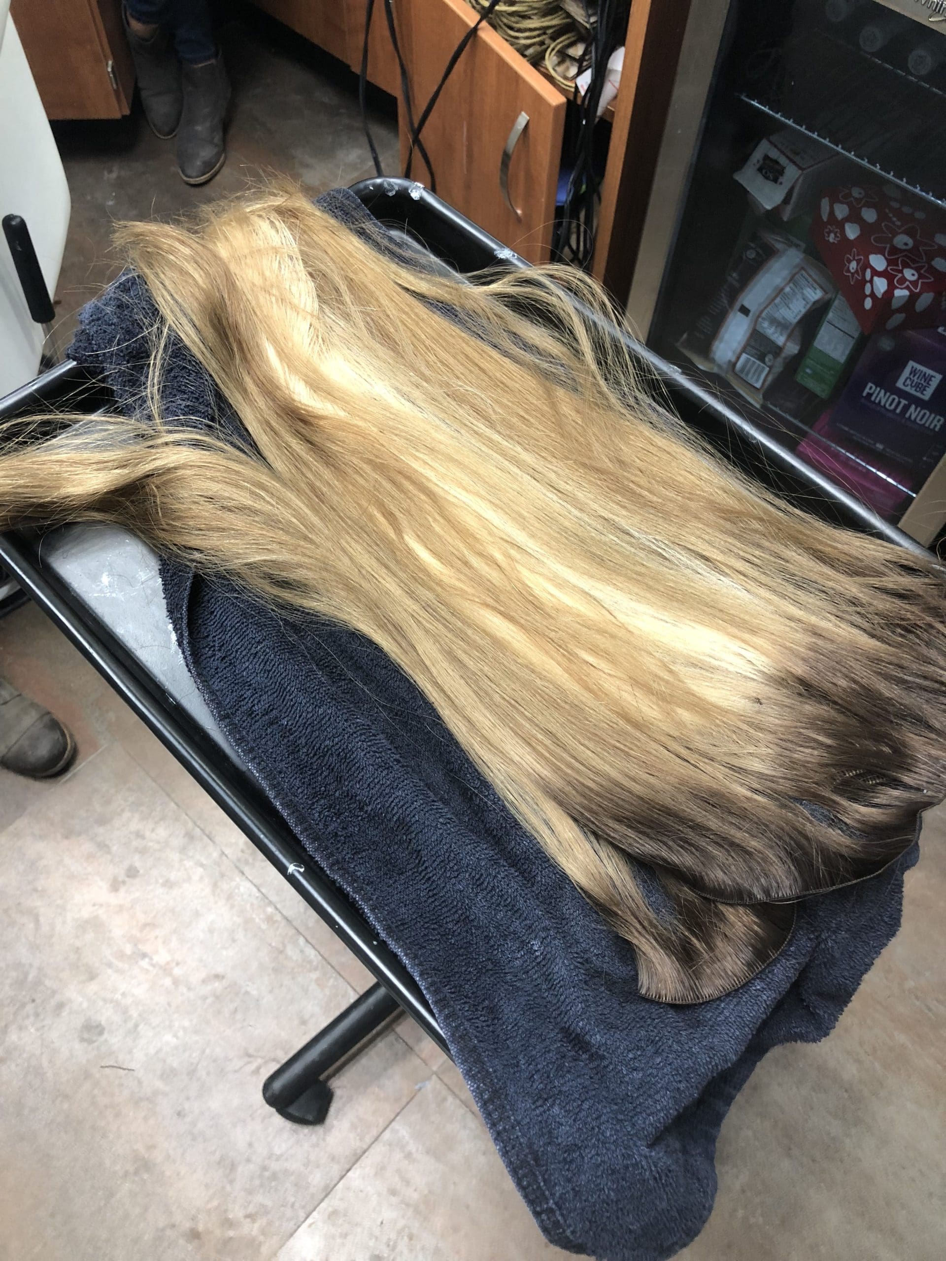 After deciding on a color that we were doing for my hair, she colored each section of the extensions to match perfectly before the install. Say hello to my new locks…