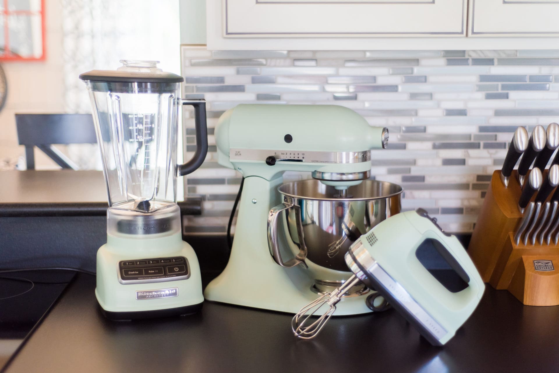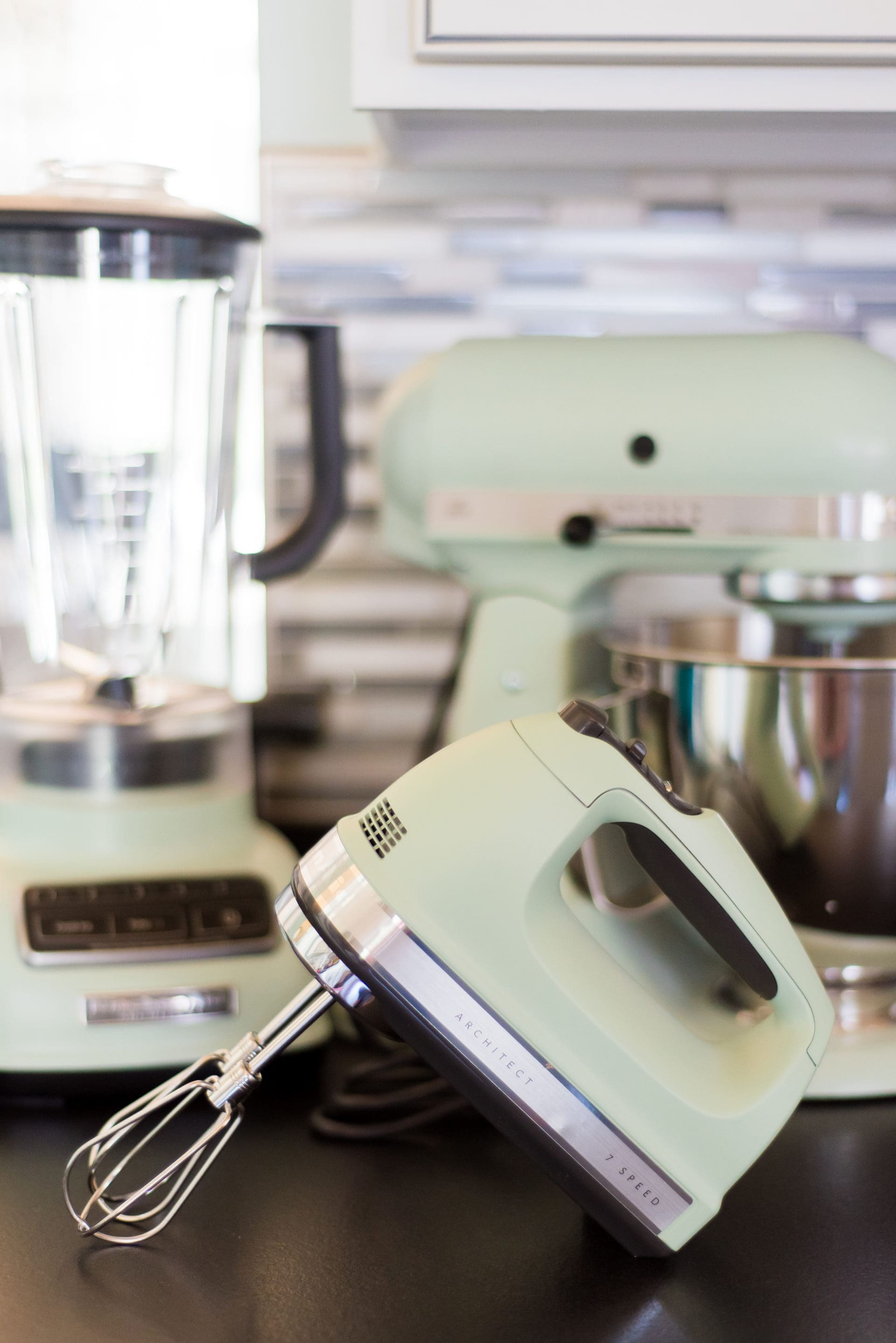 Thanks to the Macy’s big ole Friends and Family Sale happening right now [take 30% off all home + 10% off all electronics with code FRIEND] I was able to get my hands on some of the most beautiful KitchenAid appliances at a great deal for both myself and a lucky bride to be. When I saw these matte pistachio KitchenAid appliances ON SALE at Macy’s I knew they were destined to be mine. Because the mixer alone wouldn’t have been enough, I picked up the KitchenAid 5 Speed Blender and 7 Speed Hand Mixer, both in the same fresh spring color as they are both currently under $100!