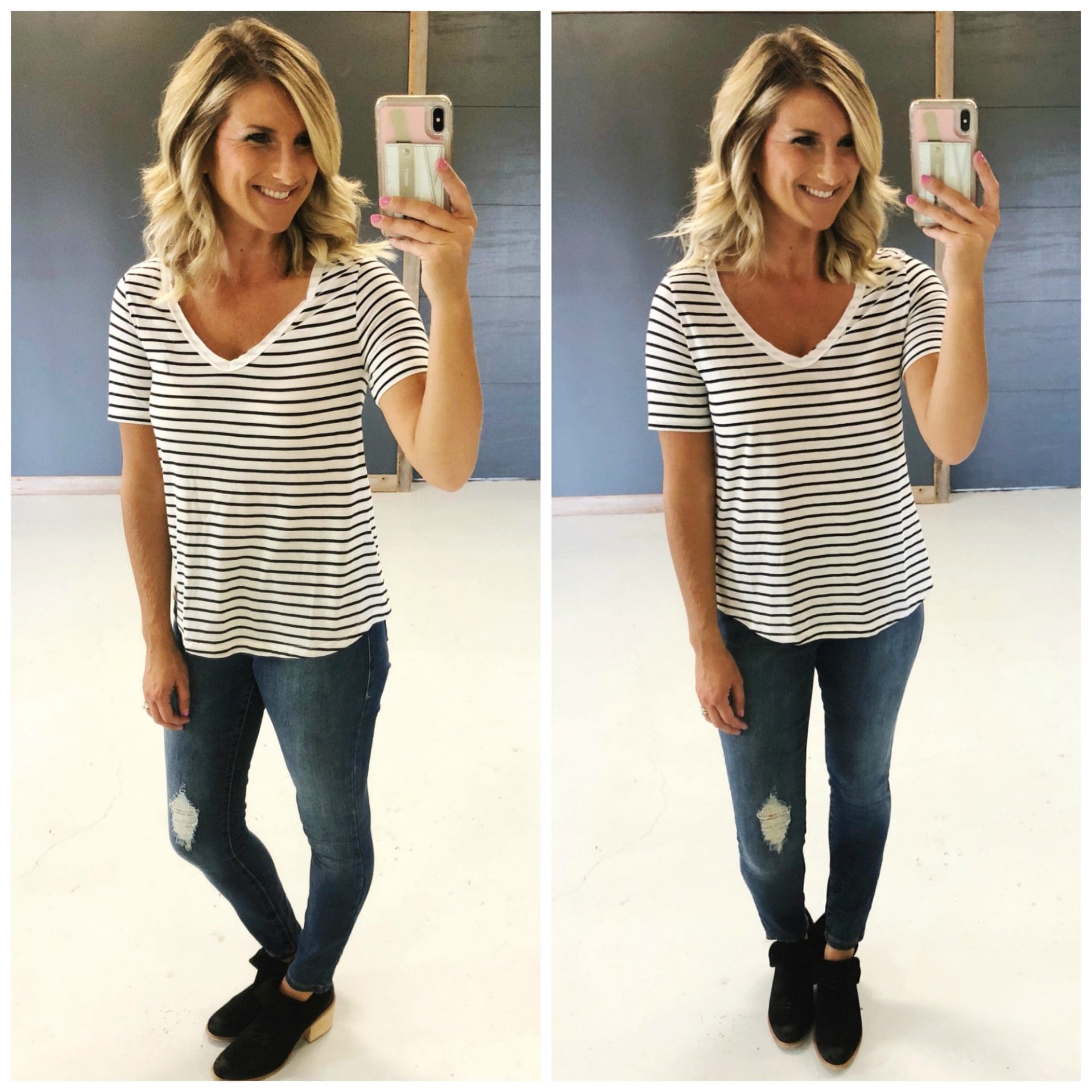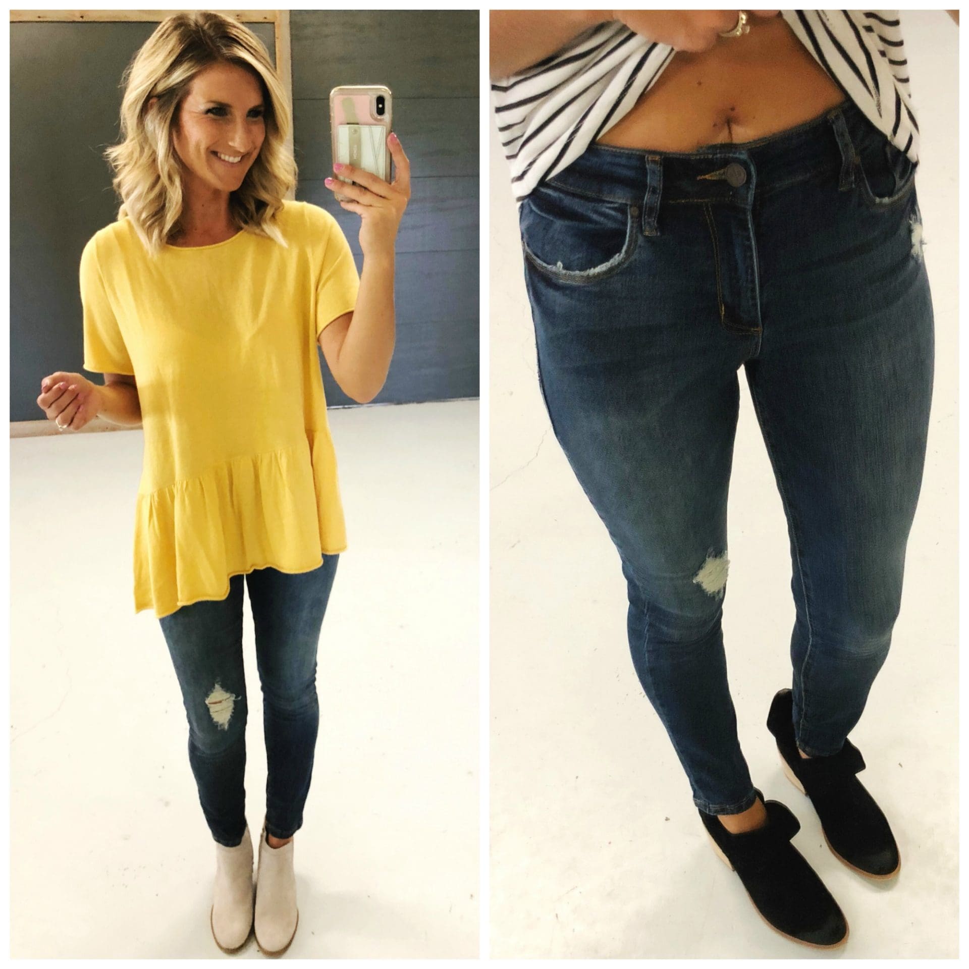 BP. Ripped High Waist Skinny Jeans [true to size, wearing in 26] I love a good high waisted jean and for this price, you can’t beat it. I also like that they have some distressing but that it’s not overly done! I can see myself getting a ton of use out of these this fall!