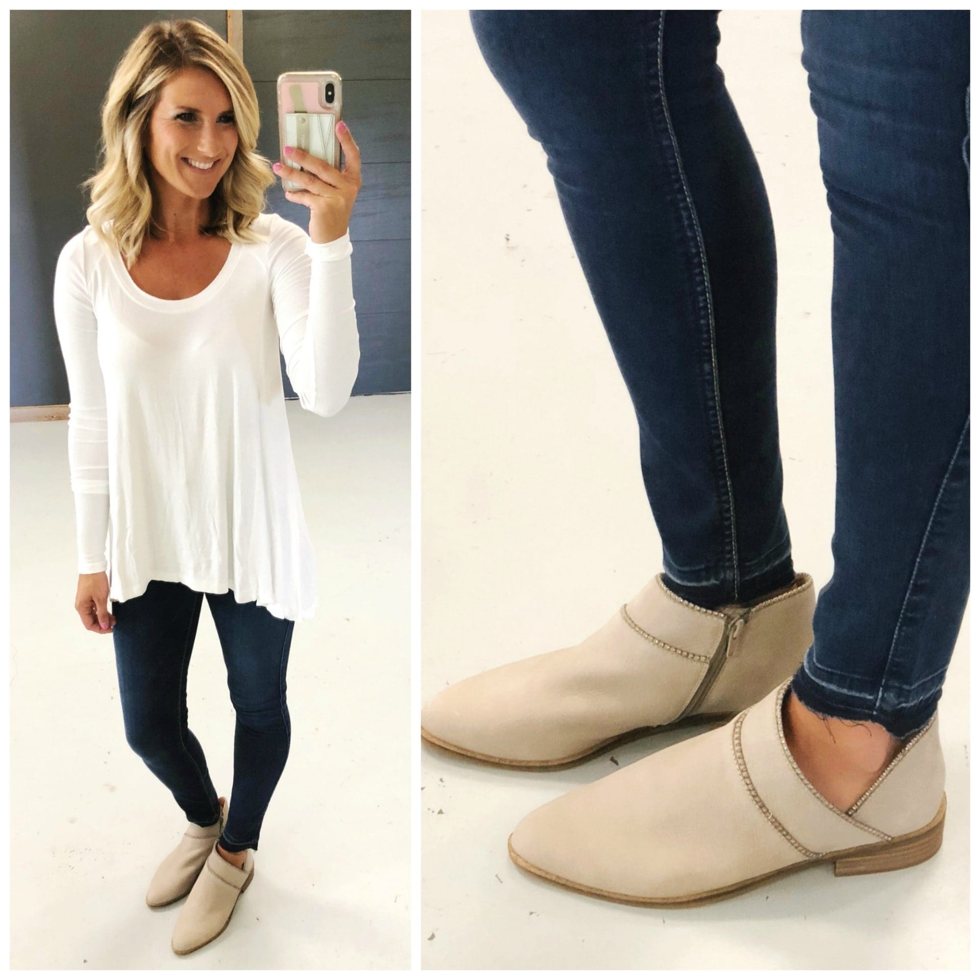 Caslon Release Hem Jeans [true to size, wearing in petite for 5’4] These high waisted jeans are some of my favorites from the sale this year! I love where the sit on my waist and how comfortable they are! The release hem adds a fun detail and makes them so easy to wear with booties!