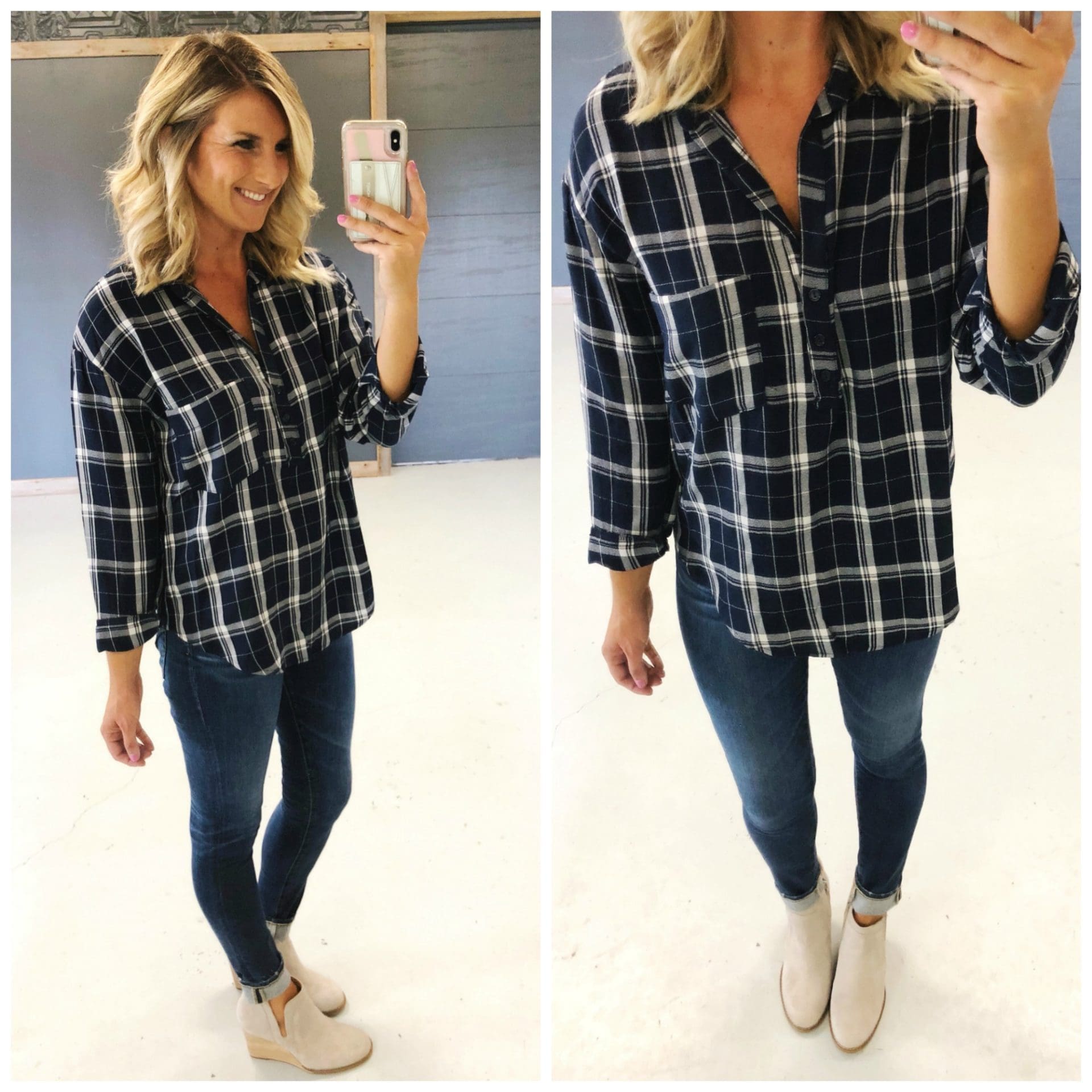 Slouchy Pocket Henley [true to size, wearing in small] I love these for layering or alone! You can tuck or leave it untucked! So soft and easy to wear!