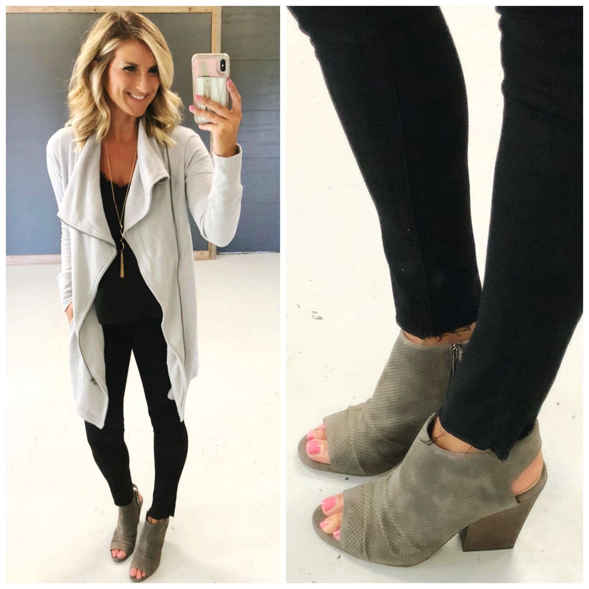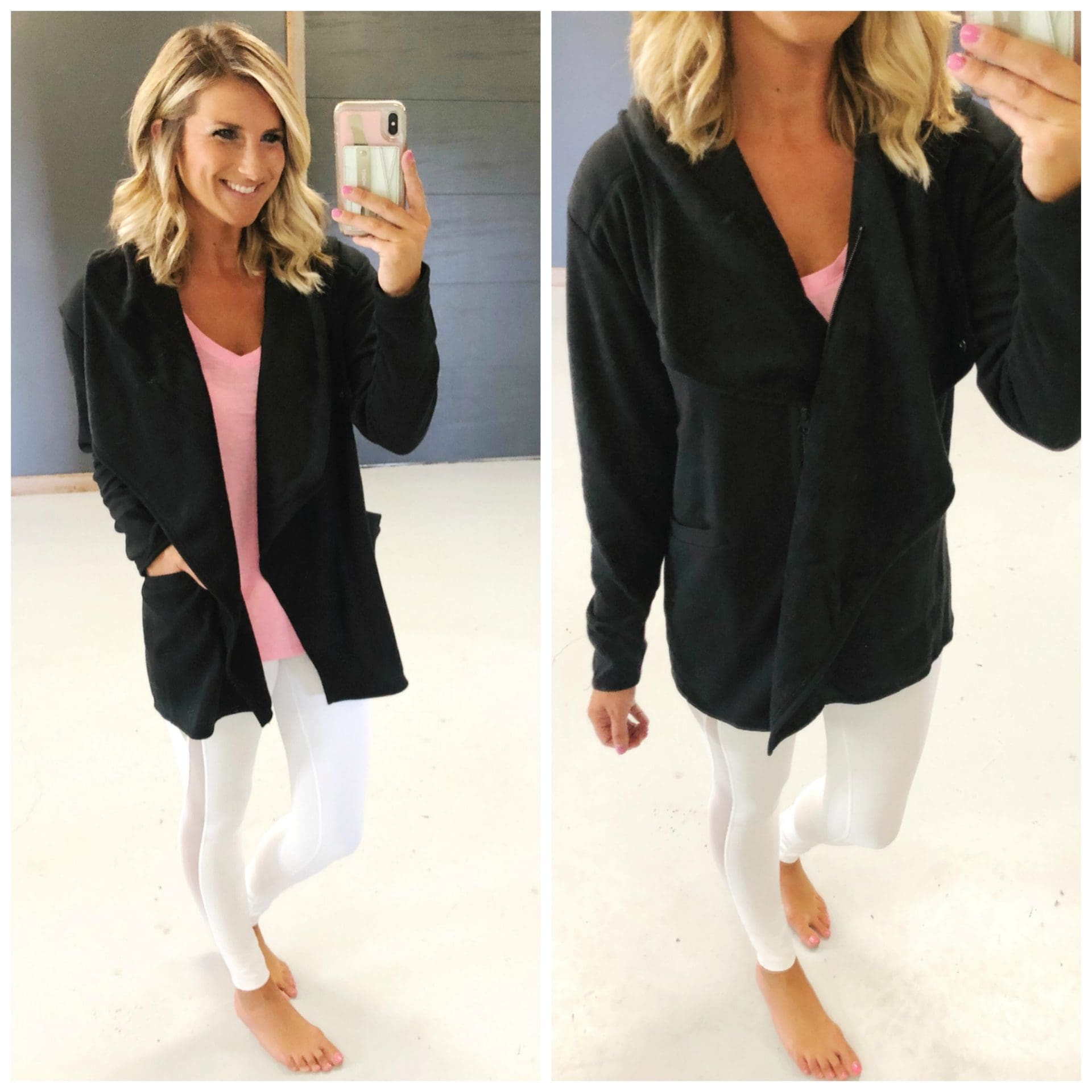 Zella Harlow Wrap Hoodie Jacket [size down if in between, wearing in small but would prefer XS] This is SUPER soft and I love the drape of it. It’s not too bulky, but lays nicely. Love it!