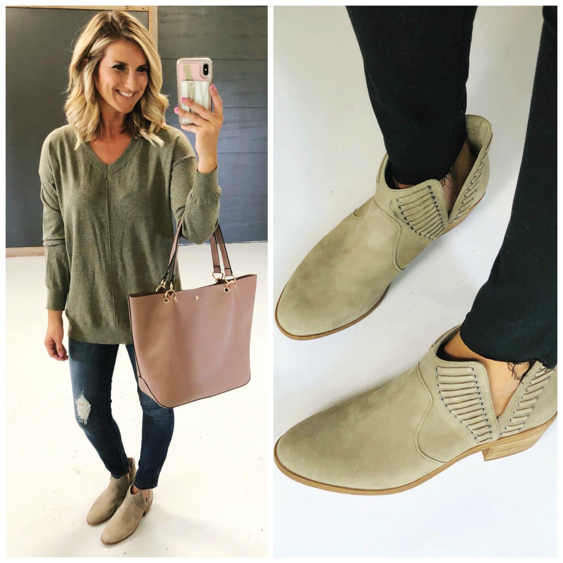Vince Camuto Pevista Bootie [true to size] I could see some of these being my most worn booties this fall. The stitching detail is spot on and they are so comfortable! They can be worn with no show socks [these are my favorite!] and because they have a low heel, they are super easy for anybody to wear!