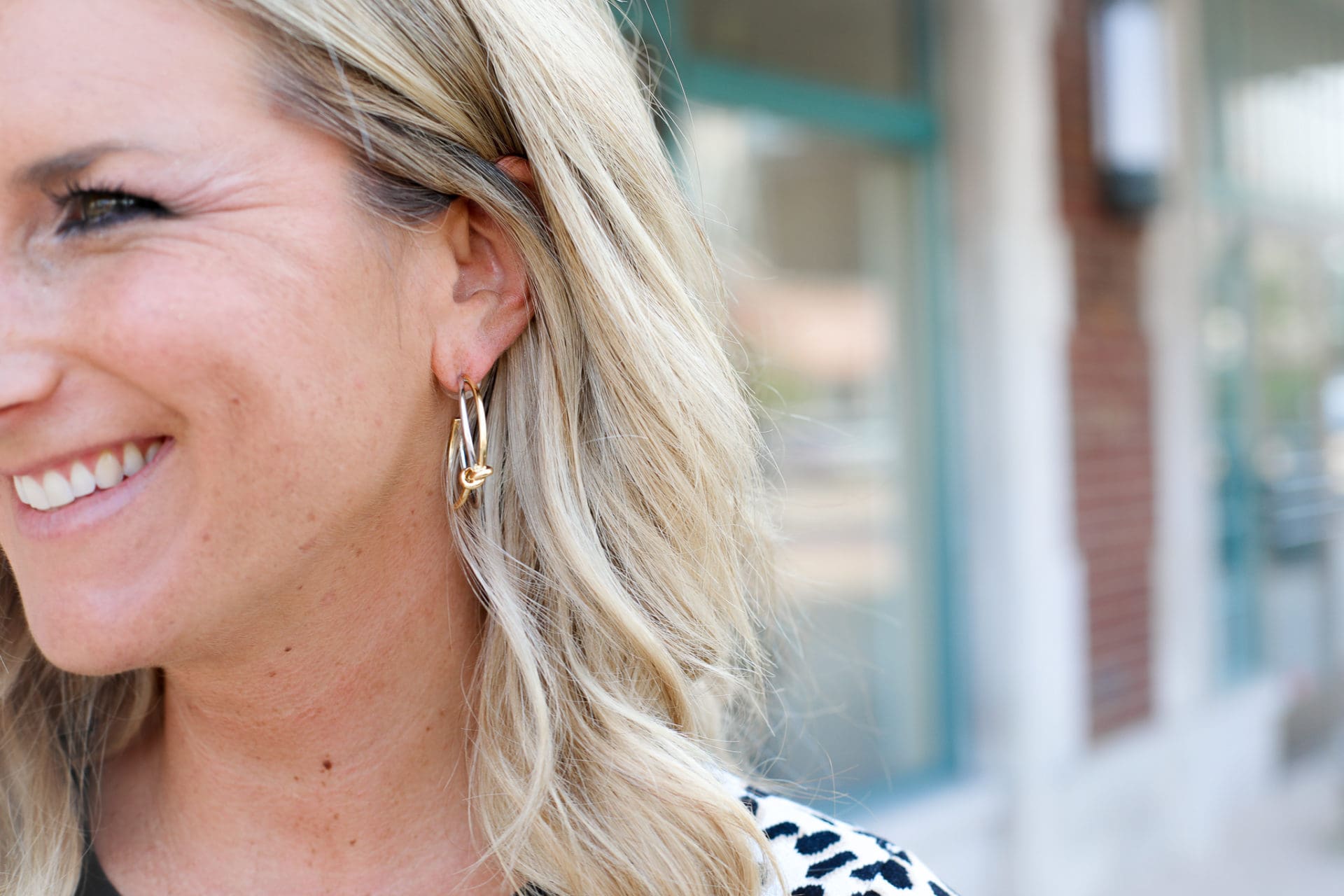 Ann Taylor Leopard Print Short Sleeve Sweater [true to size, wearing in XS] // Ann Taylor The Ankle Pant In Dense Twill [true to size] // Ann Taylor Knit Twill Moto Jacket [true to size, wearing in 2] // Ann Taylor Frannie Suede Bow Pumps [true to size] // Ann Taylor Twisted Knot Hoop Earrings