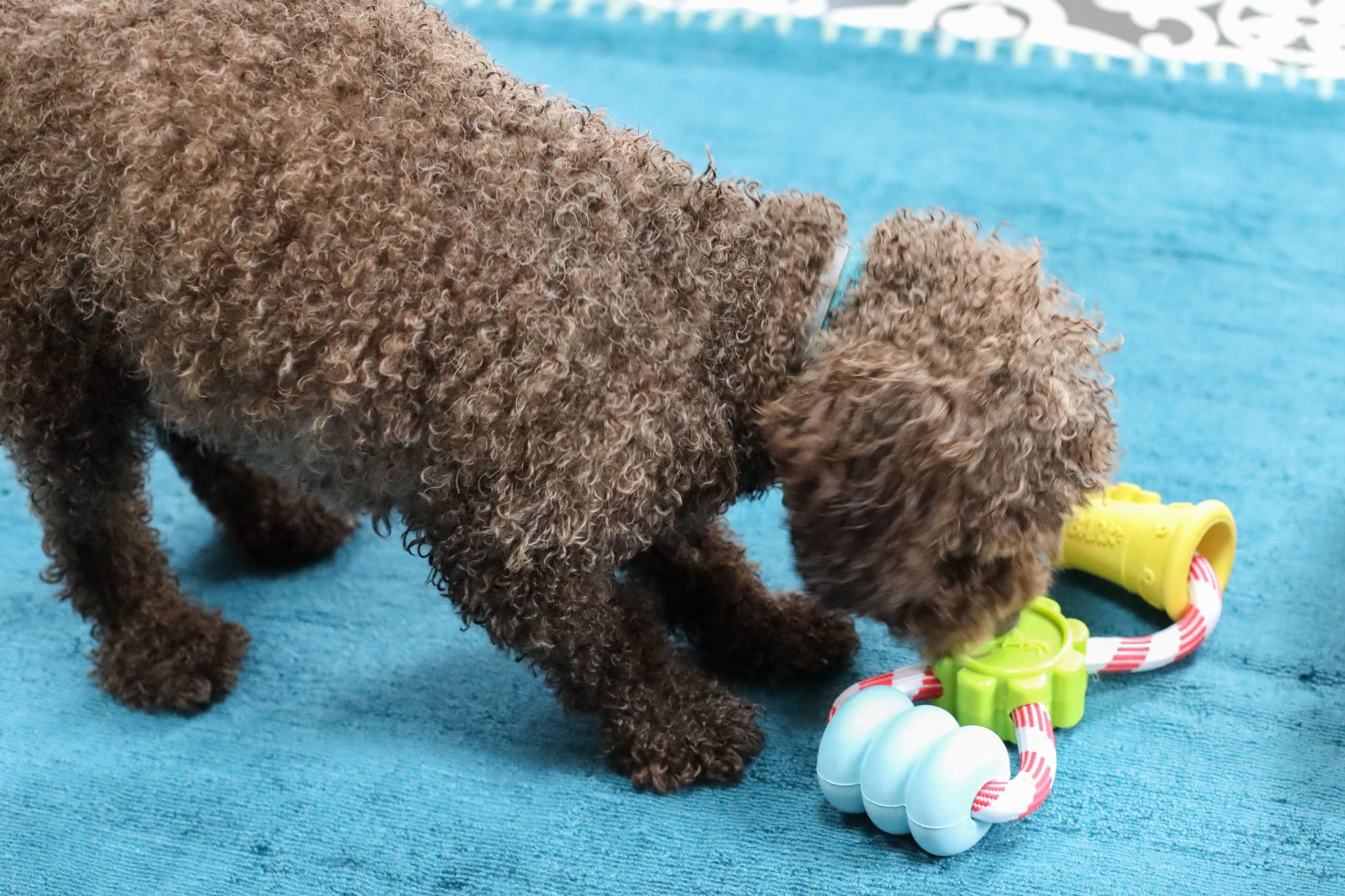 If there is one thing that Max and Ollie are known for, it’s a good time. A good time in the sense that playing is their favorite hobby and any bone, toy or treat that they can get their hands on is THE BEST THING EVER [or so says their tails]. They love nothing more than scootin’ their little butts around the house with a big ole toy in their mouth and begging for treats every 30 seconds in between. Because of this constant need to play, be spoiled and have fun, I’ve been on the hunt for a way to keep them entertained in a fun and exciting way.