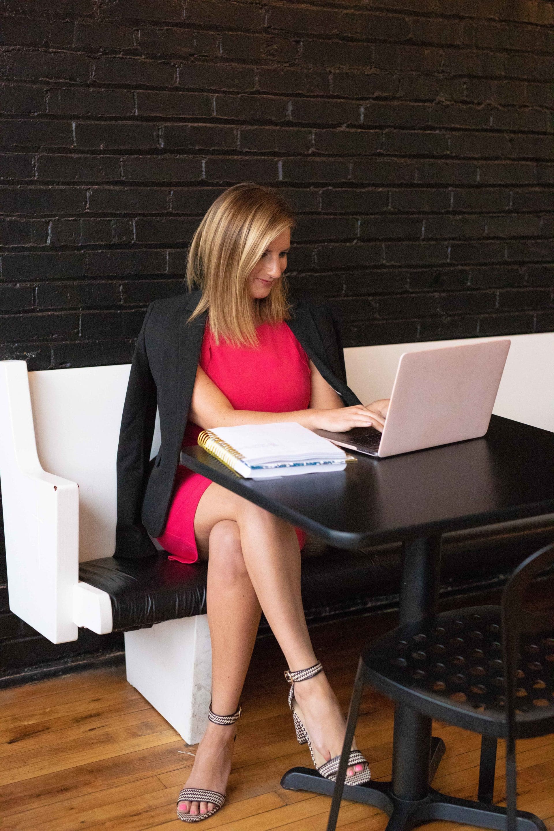 Office attire doesn’t have to be boring. Black pants definitely check the box and meet the office dress code criteria, but is there anything in the rule box that says you can’t wear a pink dress? I think not. I try to channel my inner Elle Woods whenever possible. Plus, just like with working out, I believe that you have better results when you like what you’re wearing! If your office needs covered shoulders or the AC is always cranked on, throw on a blazer like I did for some added coverage!