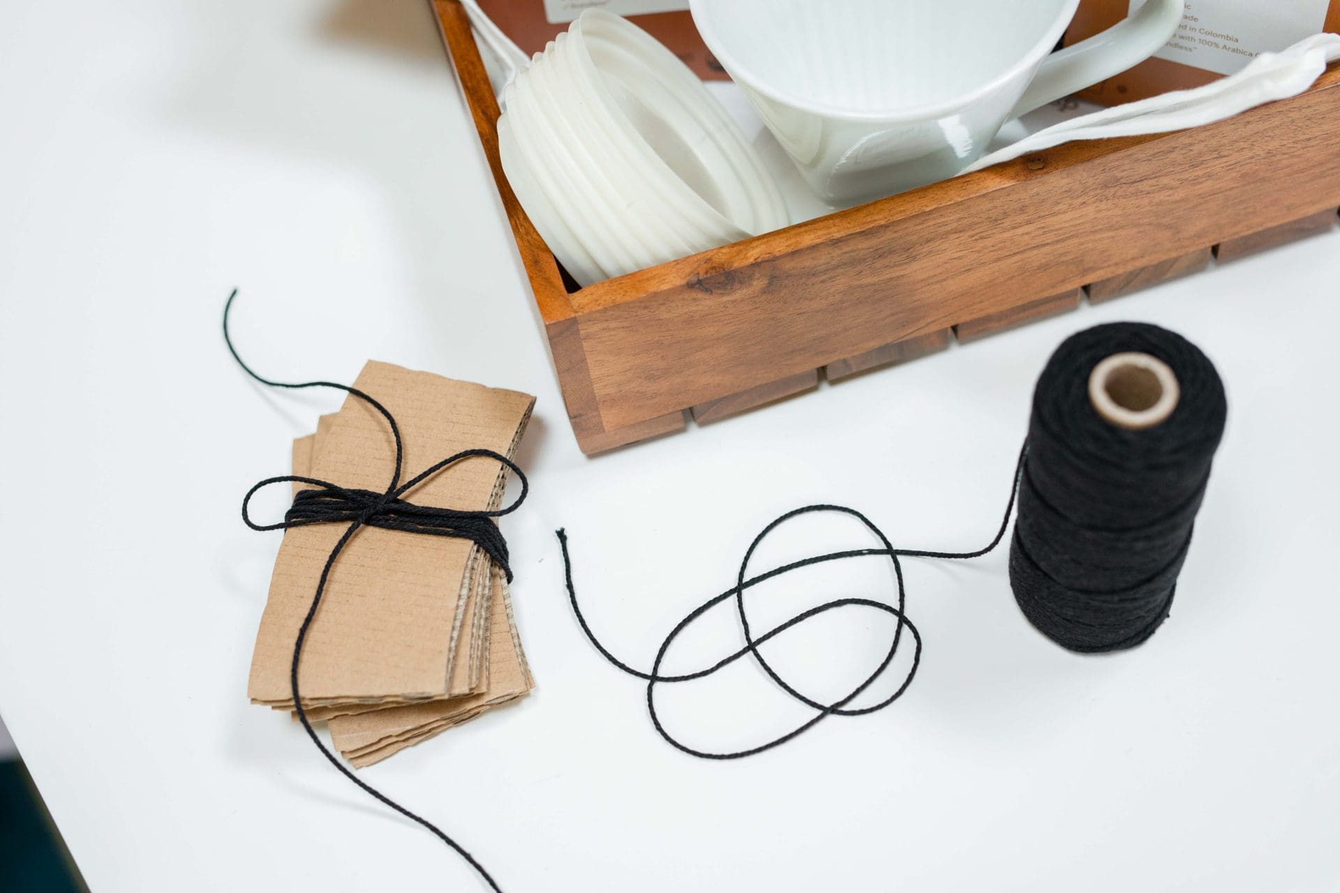 Gift Basket Tip: When you have loose little items like the to go coffee collars, try tying them together with some ribbon or twine! It creates more of a finished look, and will hopefully keep things more secured.