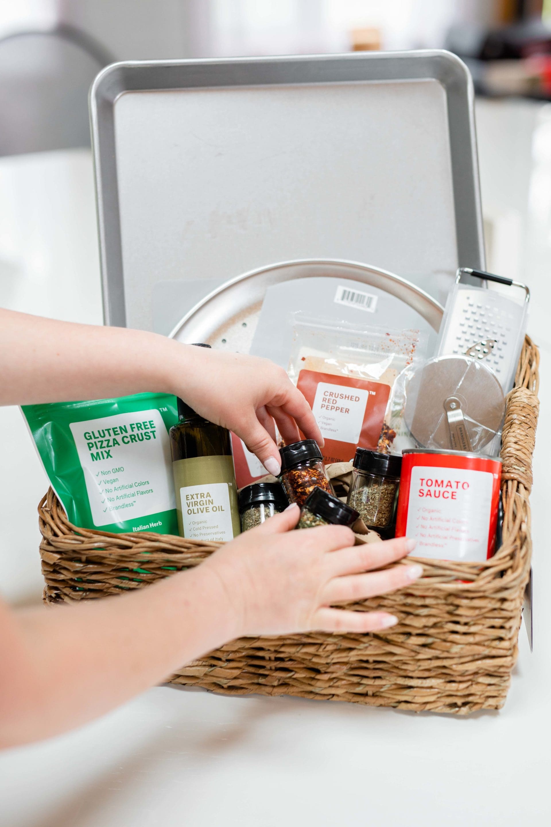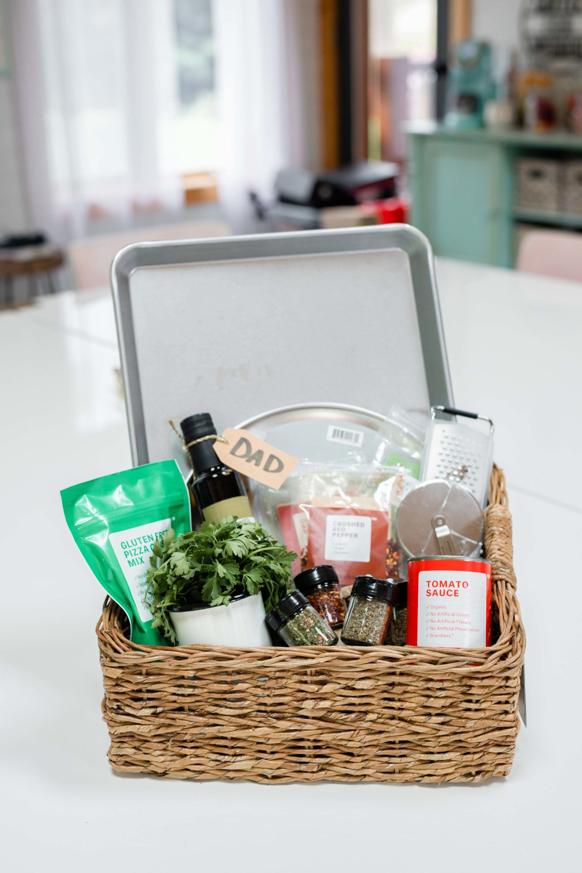 The perfect gift for foodie fathers! This bundle includes the crust, sauce, and spices needed for a great pizza, as well as the tools to help it all come together! We also added a pizza grill pan from Brandless to take the fun outdoors! To create a gift basket out of this bundle, add the bundle items into the basket along with Dad’s favorite pizza ingredients — like a block of cheese and fresh herbs!