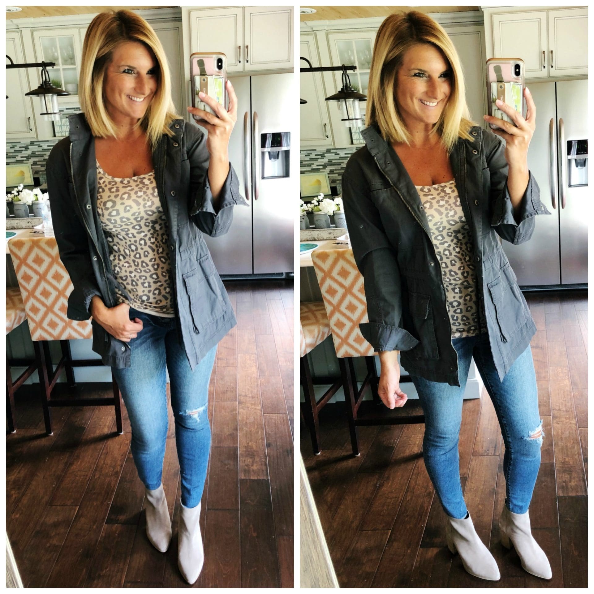 Slim Fit Animal Print Any Day Tank – A New Day [Size up one, wearing in S] // Connie Button Fly High Waist Ankle Skinny Jeans • KUT from the Kloth [TTS] // Jillian Bootie • Steve Madden [TTS] // Utility Anorak Jacket – Universal Thread [TTS]