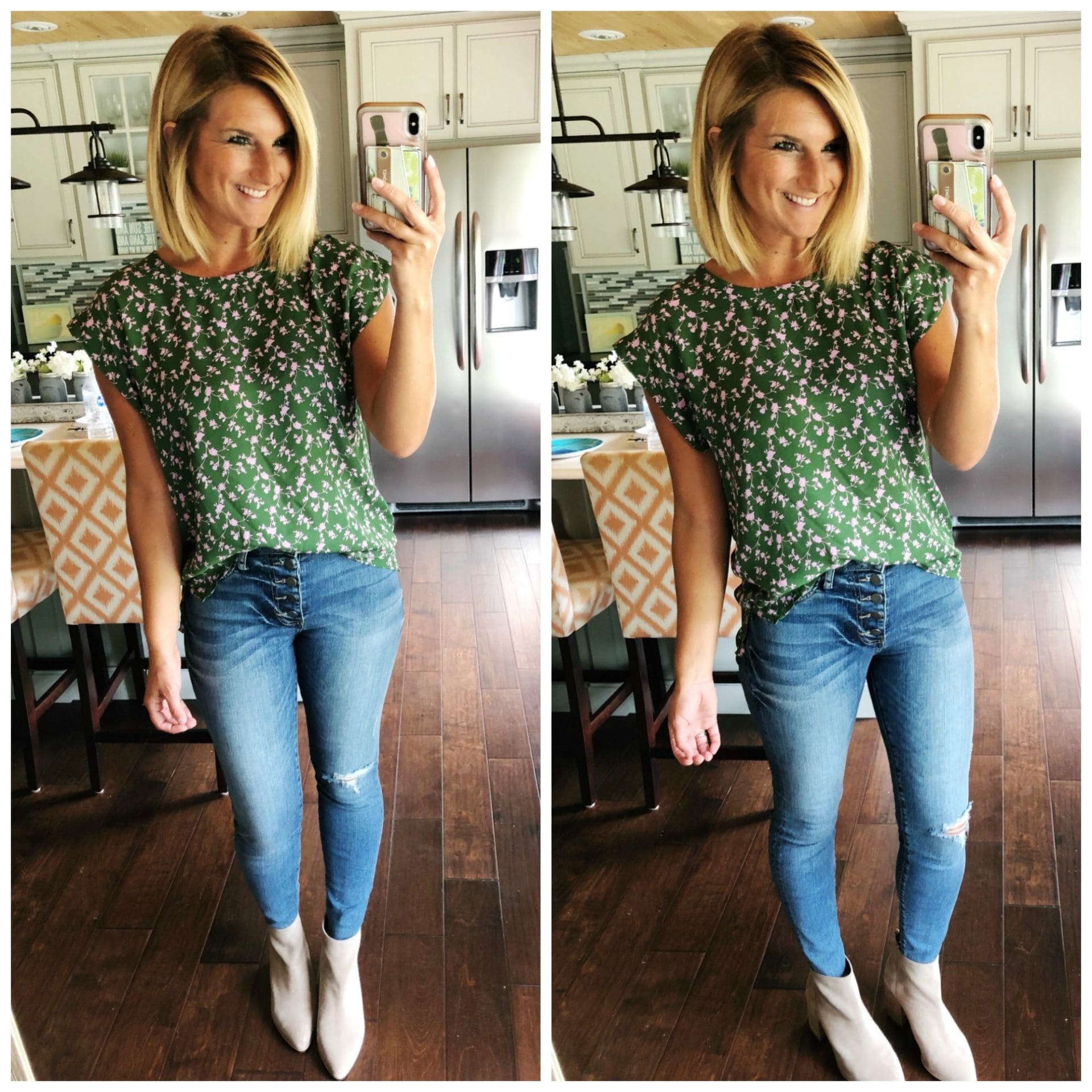 Print Oversize Cap Sleeve Top • Bobeau [Size down one, wearing in S but need XS] // Donna Button Fly Ankle Skinny Jeans • KUT from the Kloth [TTS] // Jillian Bootie • Steve Madden [TTS]