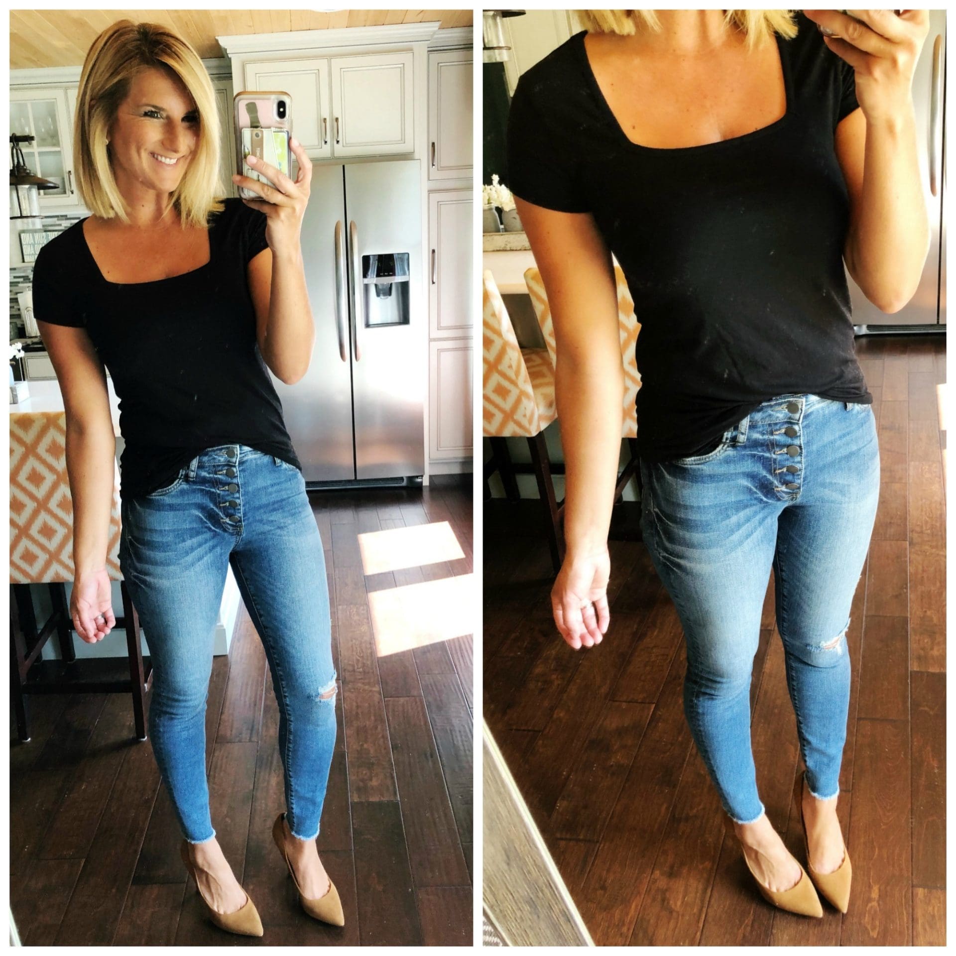 Square Neck Tee • Halogen [TTS, wearing in S] // Connie Button Fly High Waist Ankle Skinny Jeans • KUT from the Kloth [TTS] // Maxx Pointy Toe Pump • Charles by Charles David [TTS]