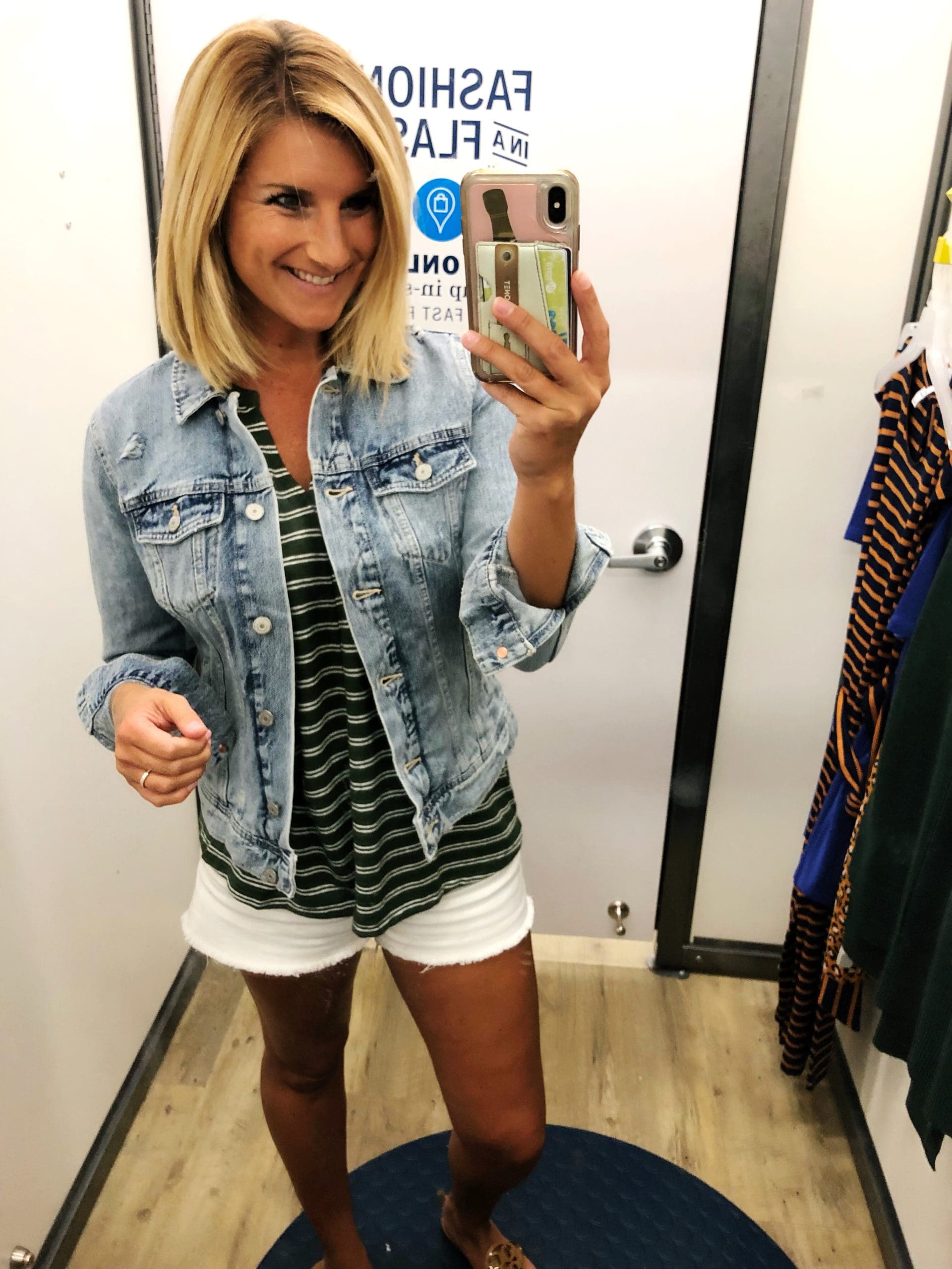 After several of the girls on the LIY team raved about this denim jacket, I knew I had to try it when I spotted in-store. It turns out the girls on the team are brainiacs and know a thing or two about a great denim jacket because this one doesn’t disappoint. For starters, the price. It’s always on sale which is reason enough to buy it 😉 Second, I love the wash and the slight distressing giving it just enough edge but not enough to make it “too trendy” to last from year to year. Third, it is quite comfortable and has a good amount of stretch to it. Highly recommend! [True to size, wearing in small]
