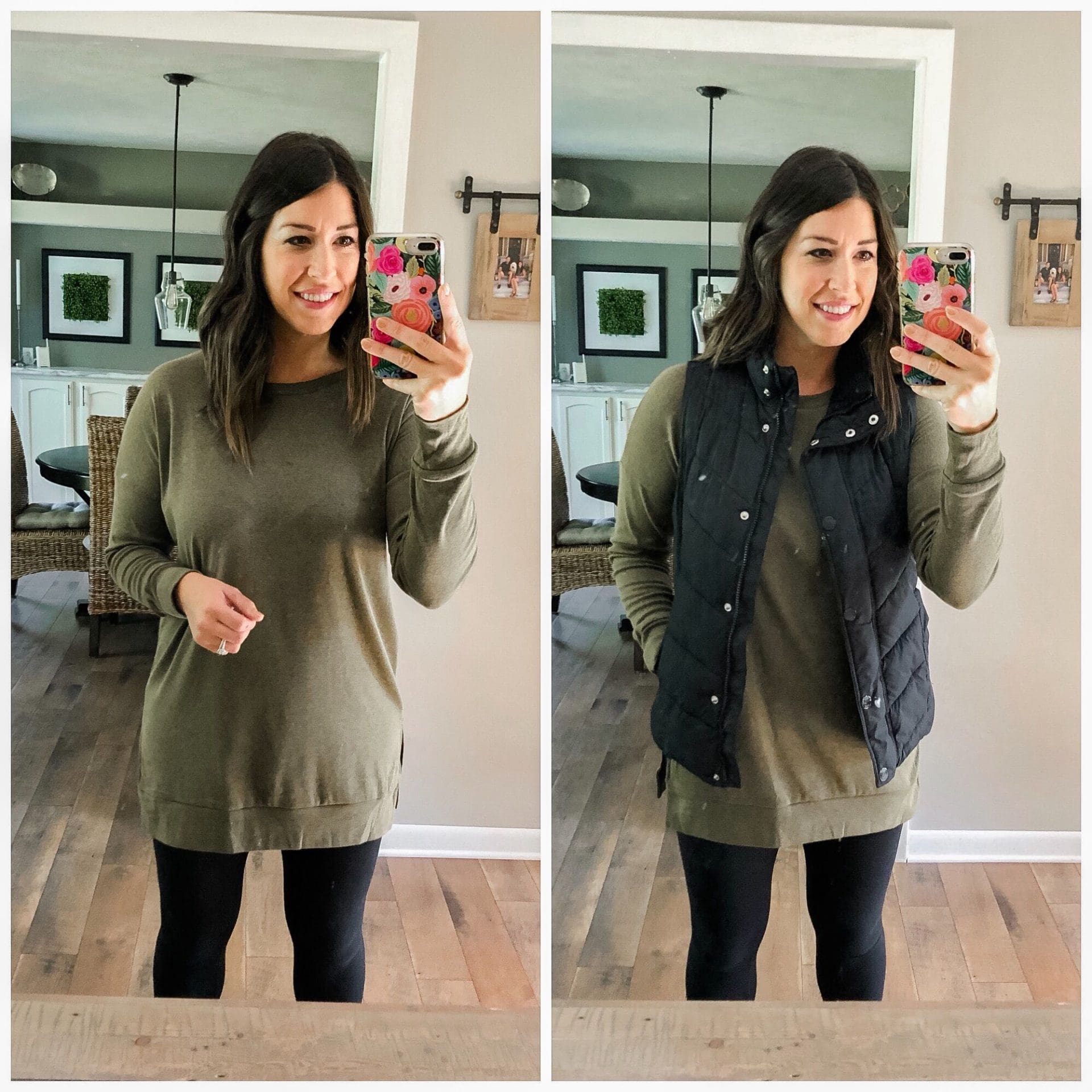 Legging season is my favorite season. Thankfully, living in the midwest, I get to experience legging season quite often! When I saw this top with over 1200 fantastic reviews and 8 colors to choose from, I knew I had to at least give it a try. And I’m so happy I did! It’s a lightweight sweatshirt material, so it will be perfect for cool fall days! At only $23 with free shipping, I couldn’t afford NOT to give it a try 😉 [True to size, wearing medium]