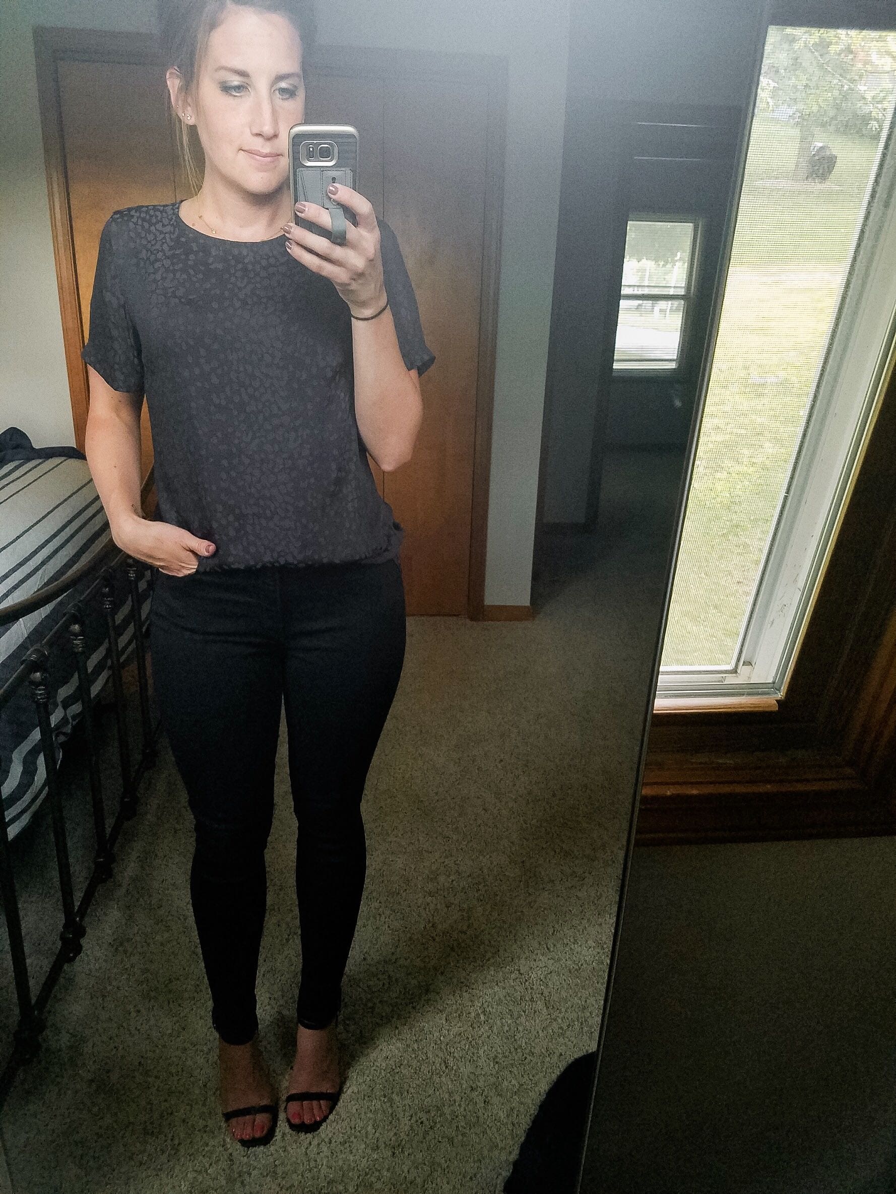 LOVING this leopard tonal print we are seeing this Fall!! It’s perfect for those of us that are loving the print but in a more subtle way that is more work appropriate! This lightweight, silky top is perfect for all of the Indiana transitional weather we have! It’s not too heavy but can easily be layered with a blazer or jacket! Transitional and versatile is key in my wardrobe! [true to size, wearing XS]