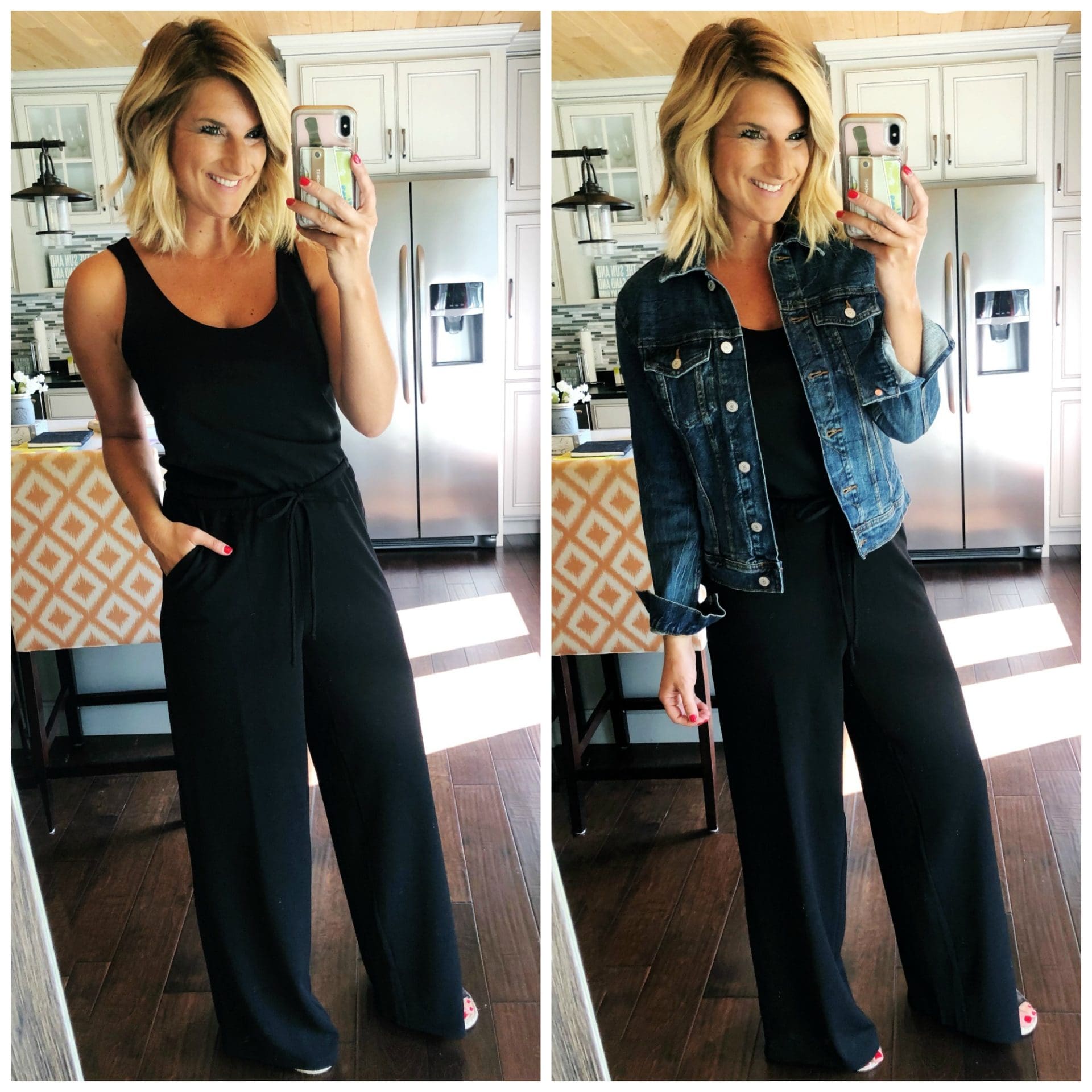 Gibson x City Safari Jaime Shrayber Wide Leg Jumpsuit [TTS, wearing in XS] // Leera Wedge Sandal • Vince Camuto [TTS] // Samantha Jacket In Dark Nolita • Mavi Jeans [Size up if in between, wearing in S]