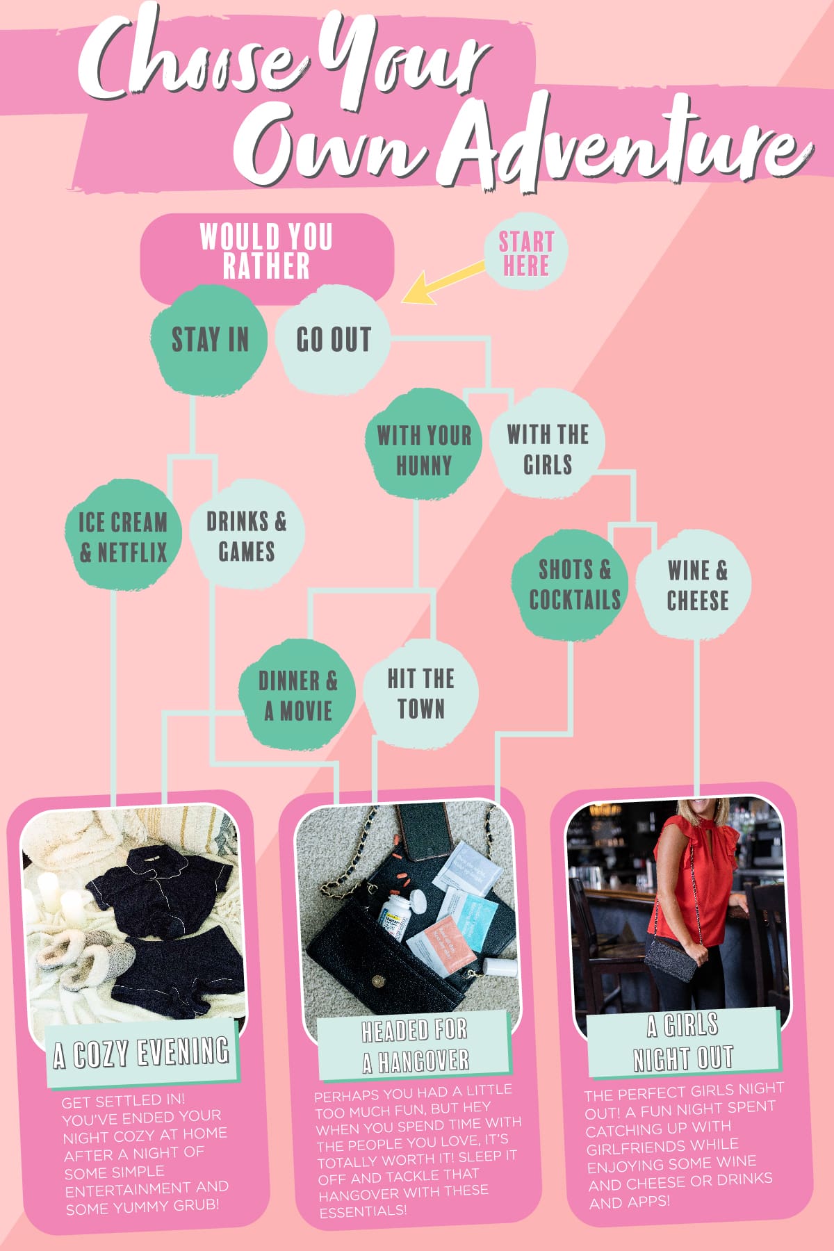 Just like the books you read in Middle School, this “Choose Your Own Adventure” style blog post is super fun! Starting below, decide how your Friday night will go by clicking on one of the options at the end of the paragraph. Make sure you click on an option rather than continuing to scroll, the blog post won’t make sense if you read it top to bottom. Ready to have some fun? Start with the paragraph below!