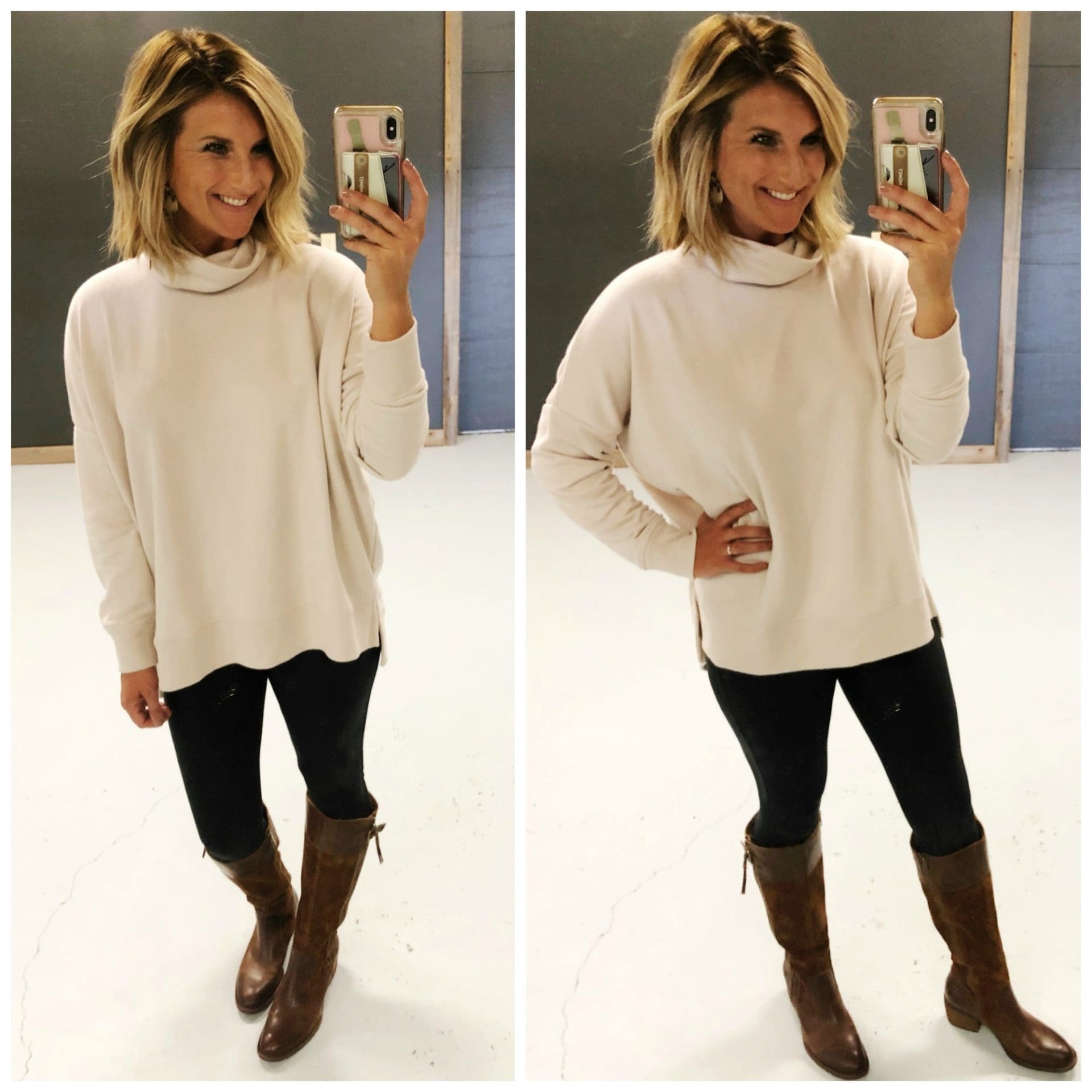 Oversized Sunday Soft Turtleneck [On sale! Size down if in between, wearing in XS] // Faux Leather Leggings • Spanx [Size up if in between] // Uchee Knee High Boot • Børn [TTS, wearing in Rust Distressed]