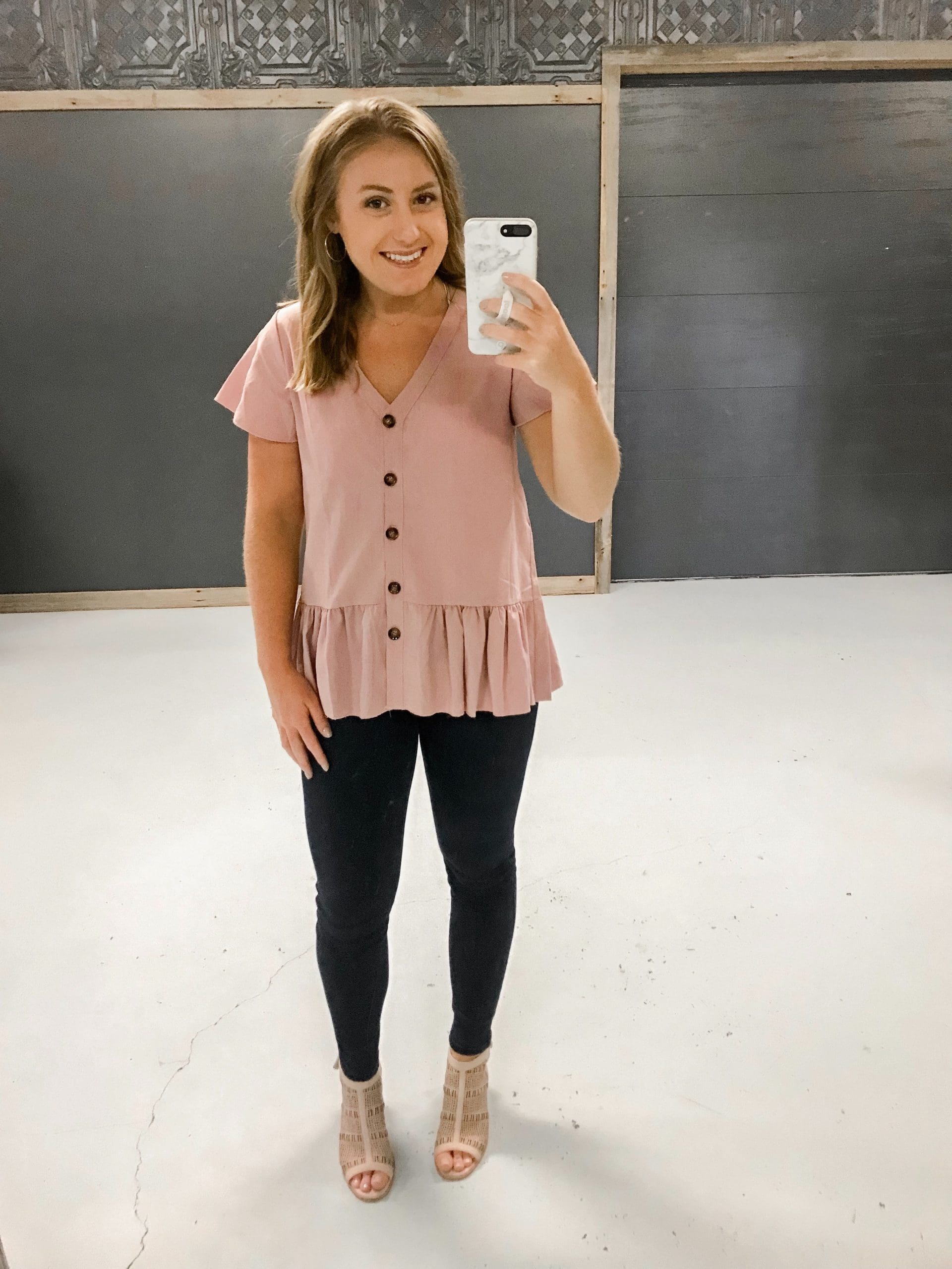 Put some pep in your step! If you’re a fan of peplum, you’ll love this little number. It does run on the large side, so size down if in between! Wearing medium but could do small!