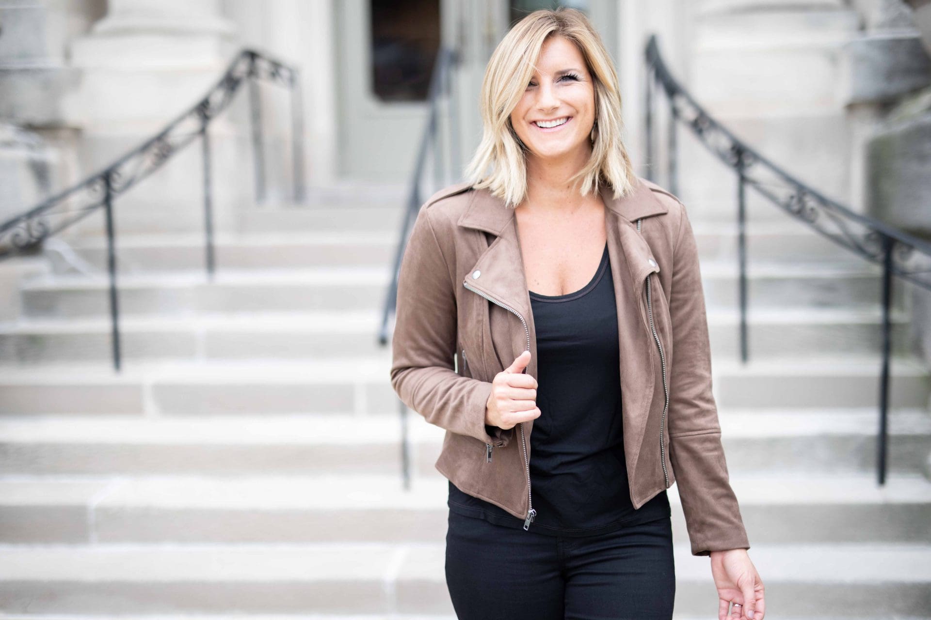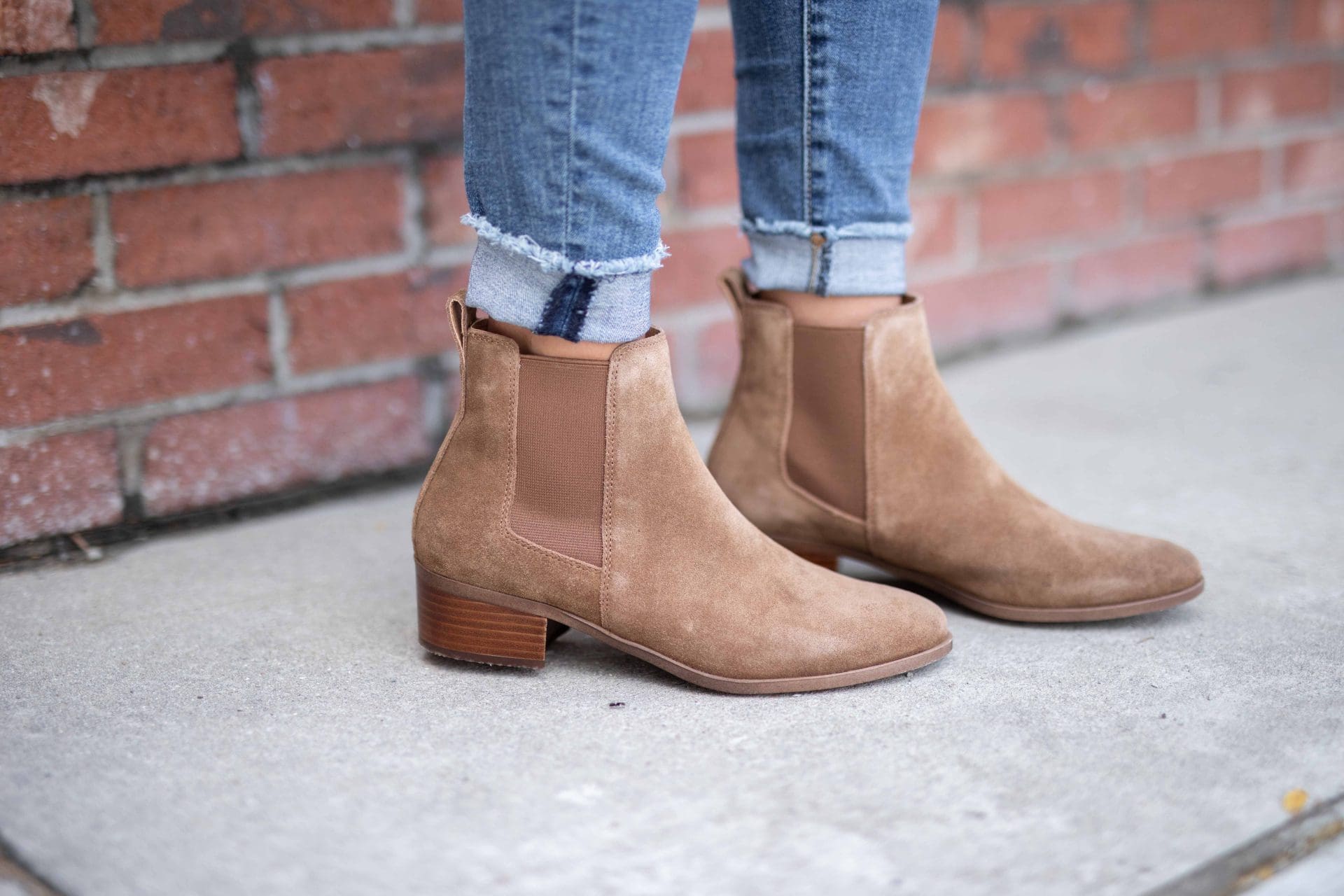 BB Dakota Women’s Not Your Baby Heavy Faux Suede Moto Jacket [true to size, wearing in small] // Splendid Scoop Neck Jersey Tee [size up if in between, wearing in small] // Wit & Wisdom Ab-solution Skinny Ankle Jeans  [size down if in between] // Vince Camuto Kressi Bootie [true to size]