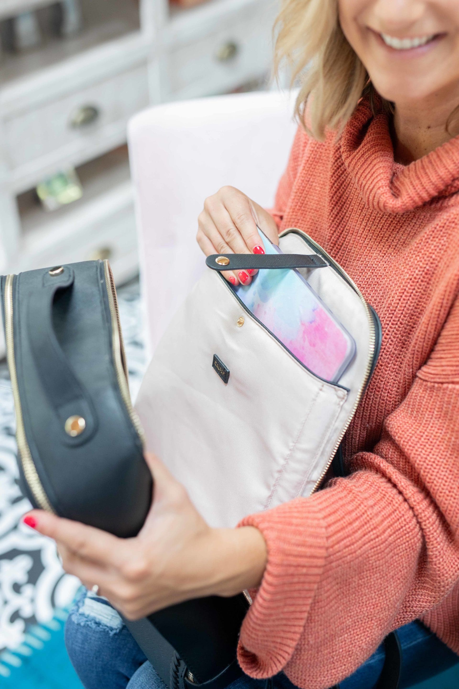 Gosh, I love this CALPAK Kaya Faux Leather Laptop Backpack. Not only is it perfect for travel [the straps slide over your carry on luggage handle which is amazing] it is perfect for the office too. It has a padded pocket for you laptop, plus a variety of other zipper compartments for other items. It’s a nice size and not bulky! If you’ve been looking for a backpack, I would highly recommend this one [three of us on the LIY team have it, use it, love it!]