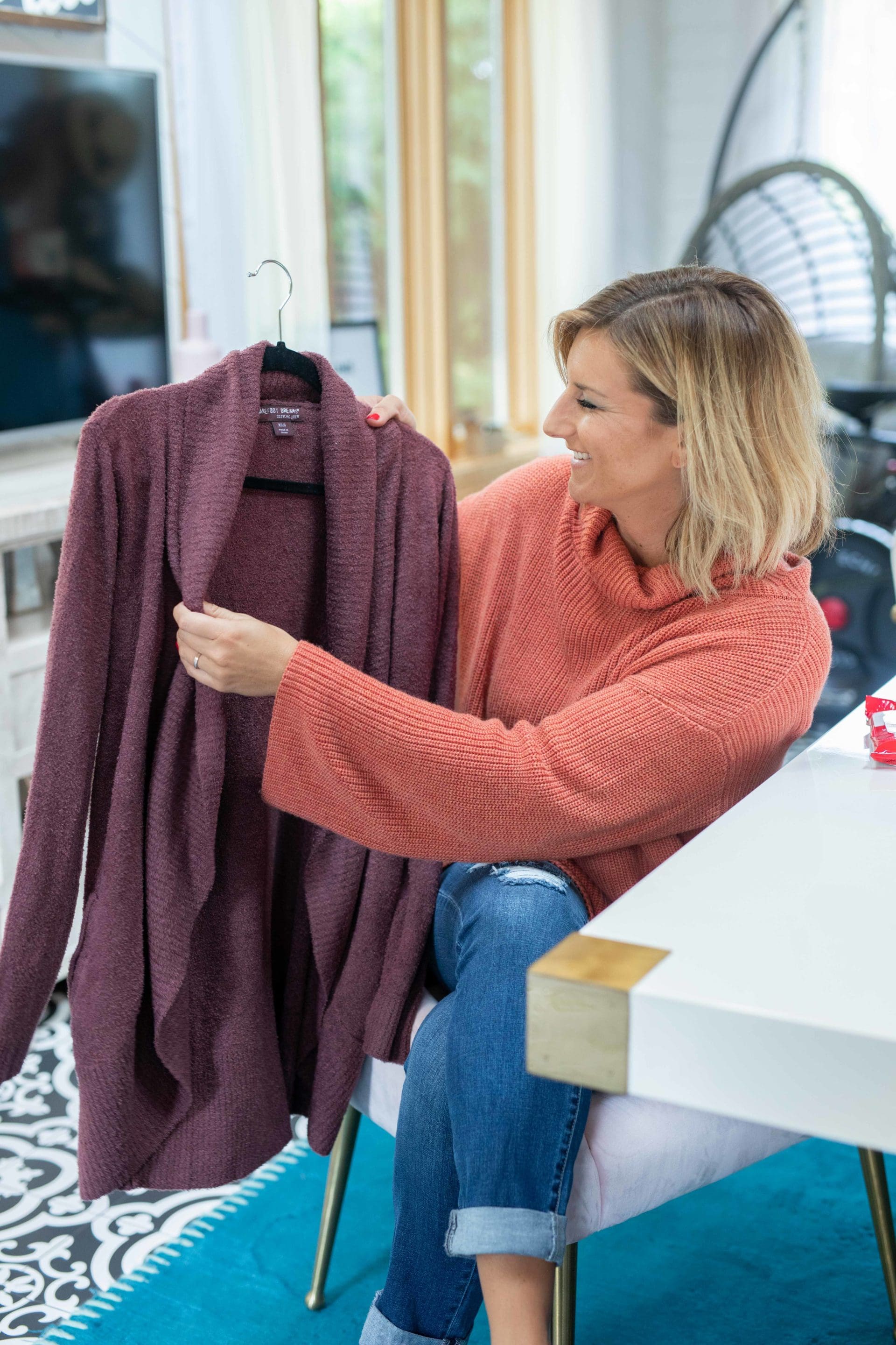 Last but certainly not least, my beloved Barefoot Dreams Circle Cardigan. This has been a favorite for years so I felt like I should include it in this roundup. It’s typically the first thing I reach for in the morning while I reach with my other hand for my mug of coffee. In the fall and winter I love wearing it out and about with leggings, jeans and riding boots or nothing at all [kidding, or am I?] It stays soft forever and is the coziest thing I own in my closet. I’ve bought one for friends, my mom, co-workers and I always get rave reviews! A closet must!