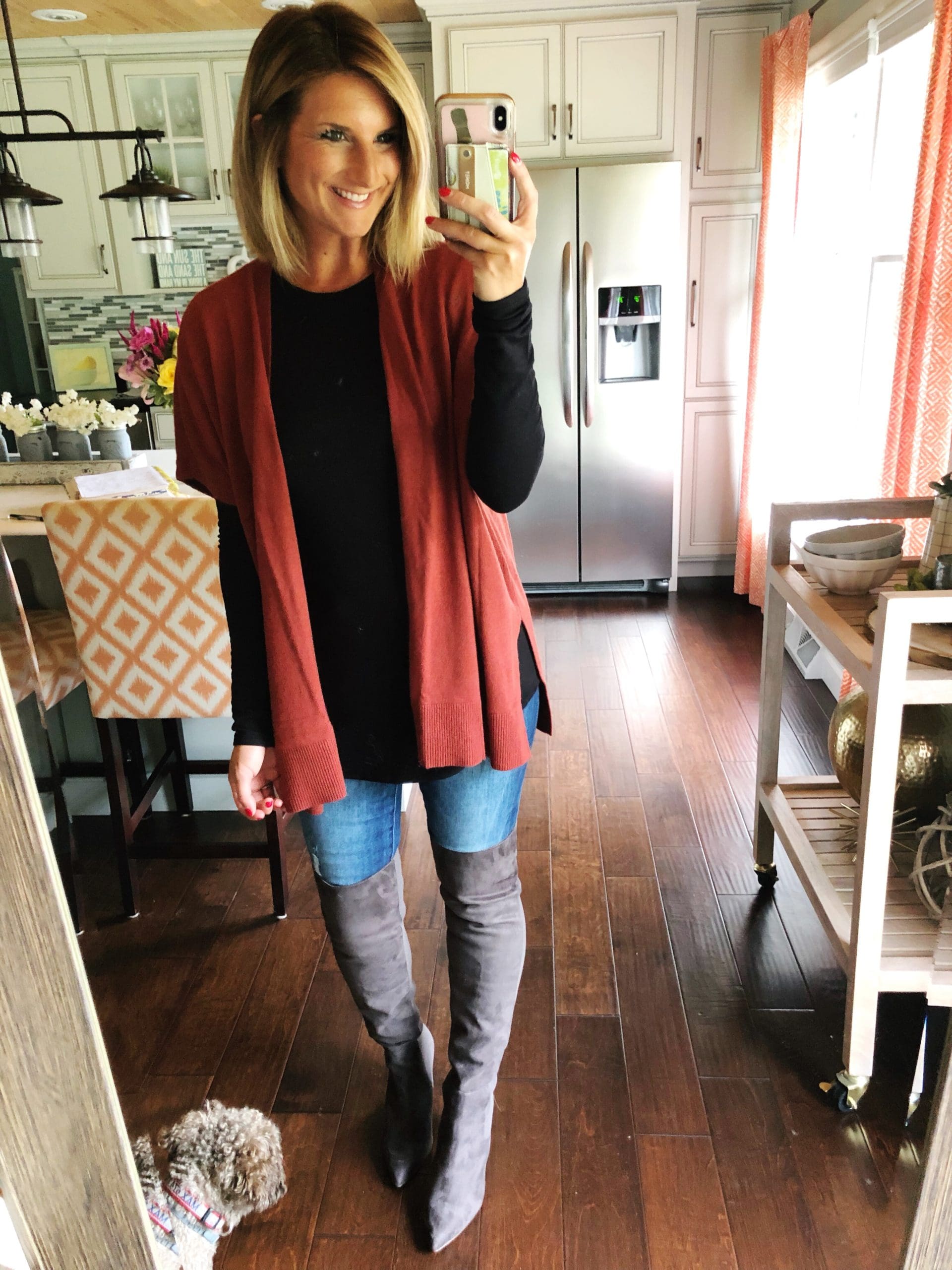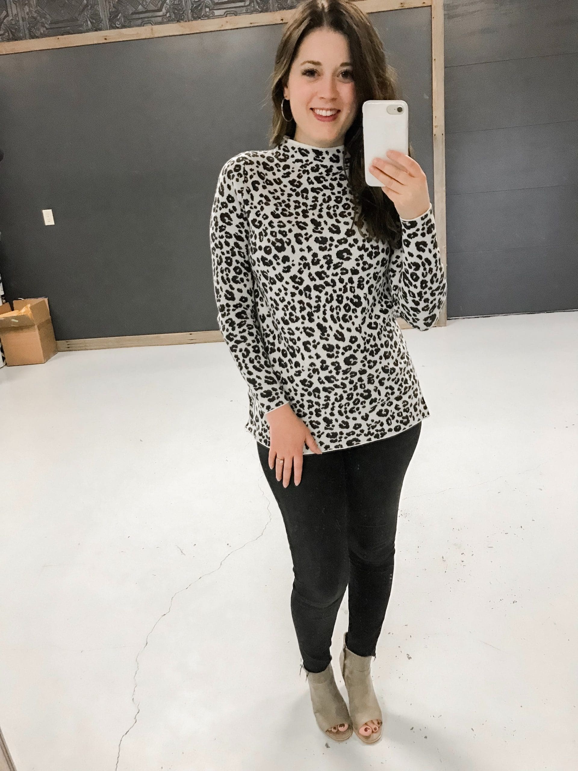 This animal print fad is lingering on, and I am not mad about it! Loving this tunic sweater for fall! It’s very soft and feels like super high quality fabric! It is nice and warm without being bulky so it would work well for fall or winter! For a tunic, it is on the shorter side, so I am not sure if I would pair it with leggings, but I love it enough to still give it two thumbs up! Wearing Petite XS, Size Up if in Between