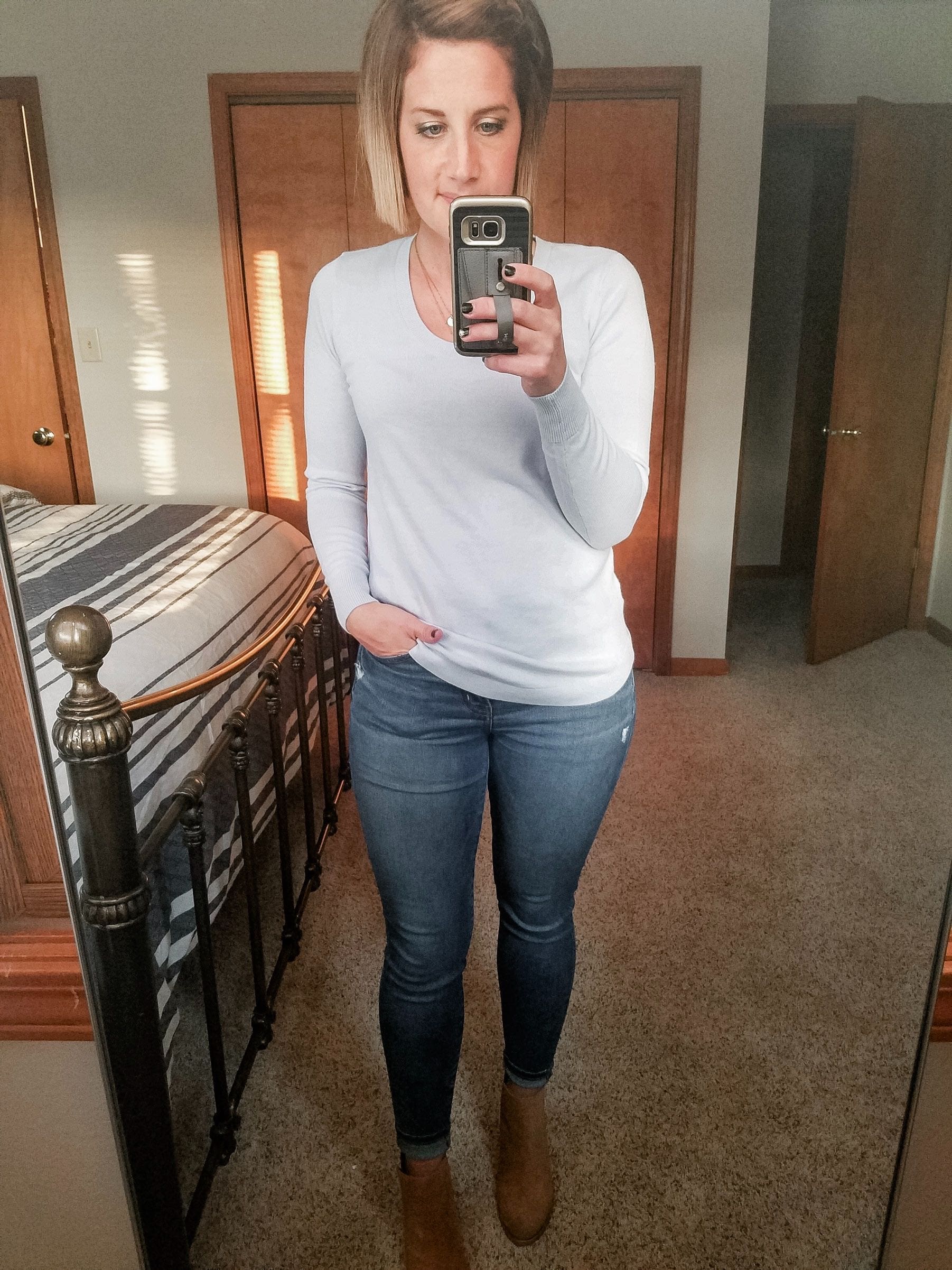 Is it one shirt or is it two? You’ll leave people guessing but the secret will be all ours — it’s one! I love this tunic [yes, it’s legging friendly!] for fall. The ballet neck gives it an extra detail and whether you dress it up or down, you’re sure to be cozy all fall long.