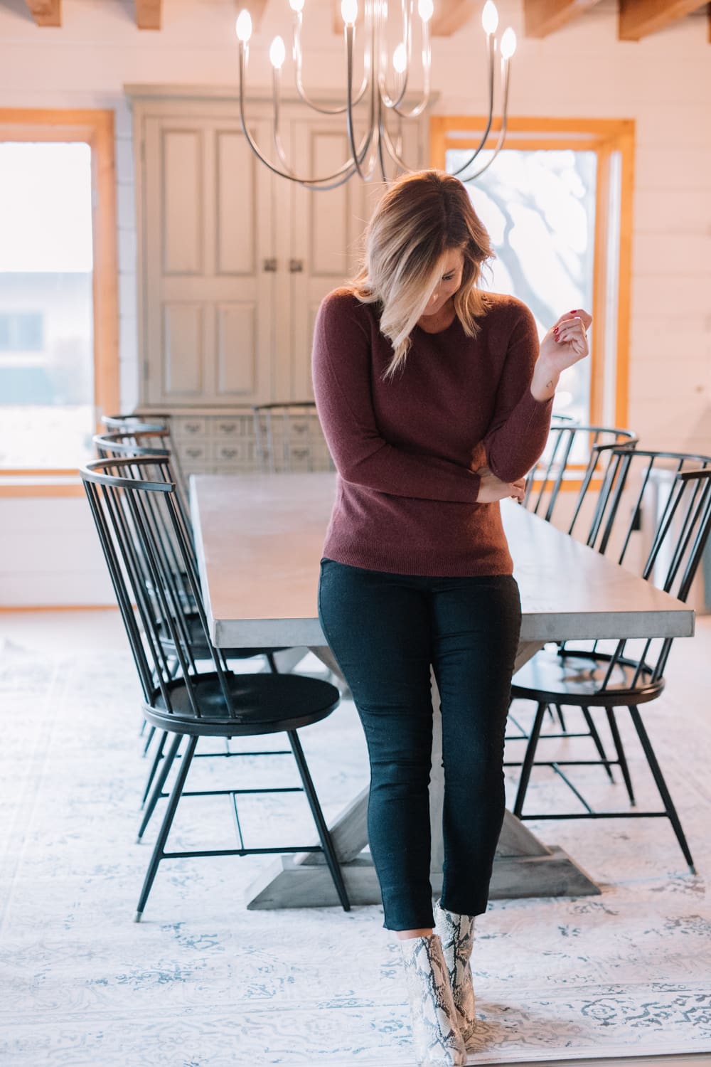Lord & Taylor Essential Cashmere Crewneck Sweater [true to size, wearing small in Teak Brown] // Democracy Stretched Cropped Jeggings [true to size] // Sam Edelman Trailblazer Hilty Leather Booties [true to size]