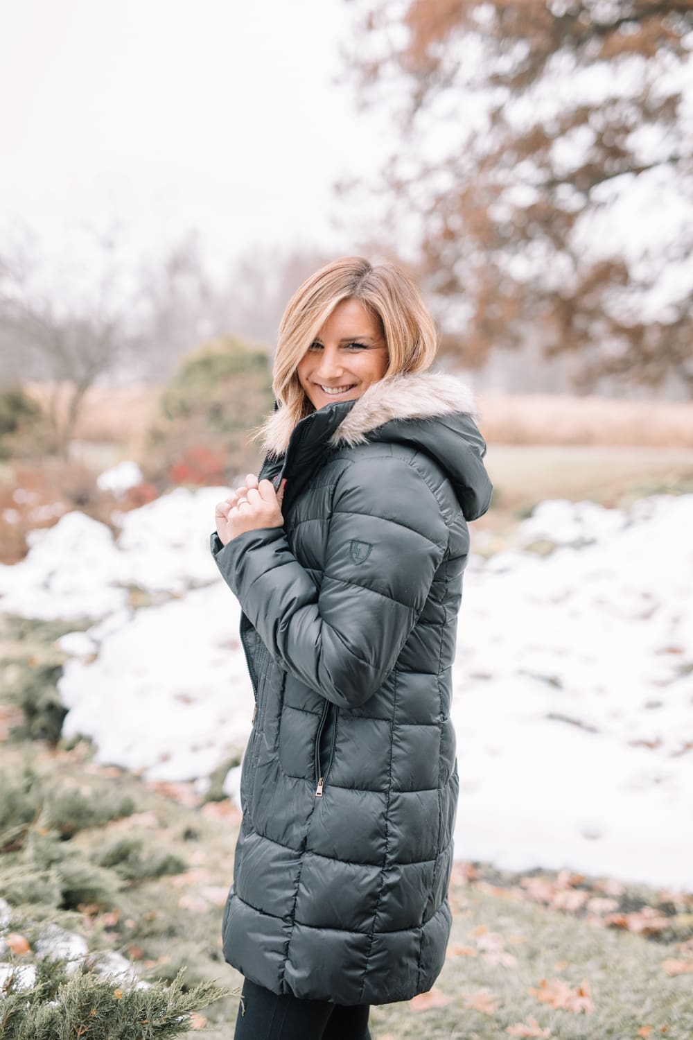 Larry Levine Faux-Fur Hooded Coat [true to size, wearing size small] // Spanx Look at Me Now Seamless Leggings [size up if in between, wearing small] // Sam Edelman Trailblazer Hilty Leather Booties [true to size]