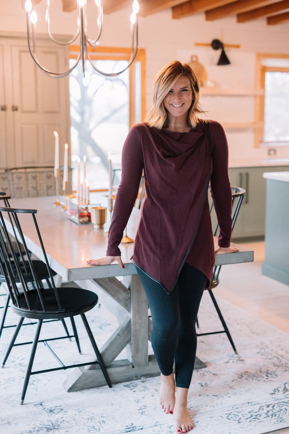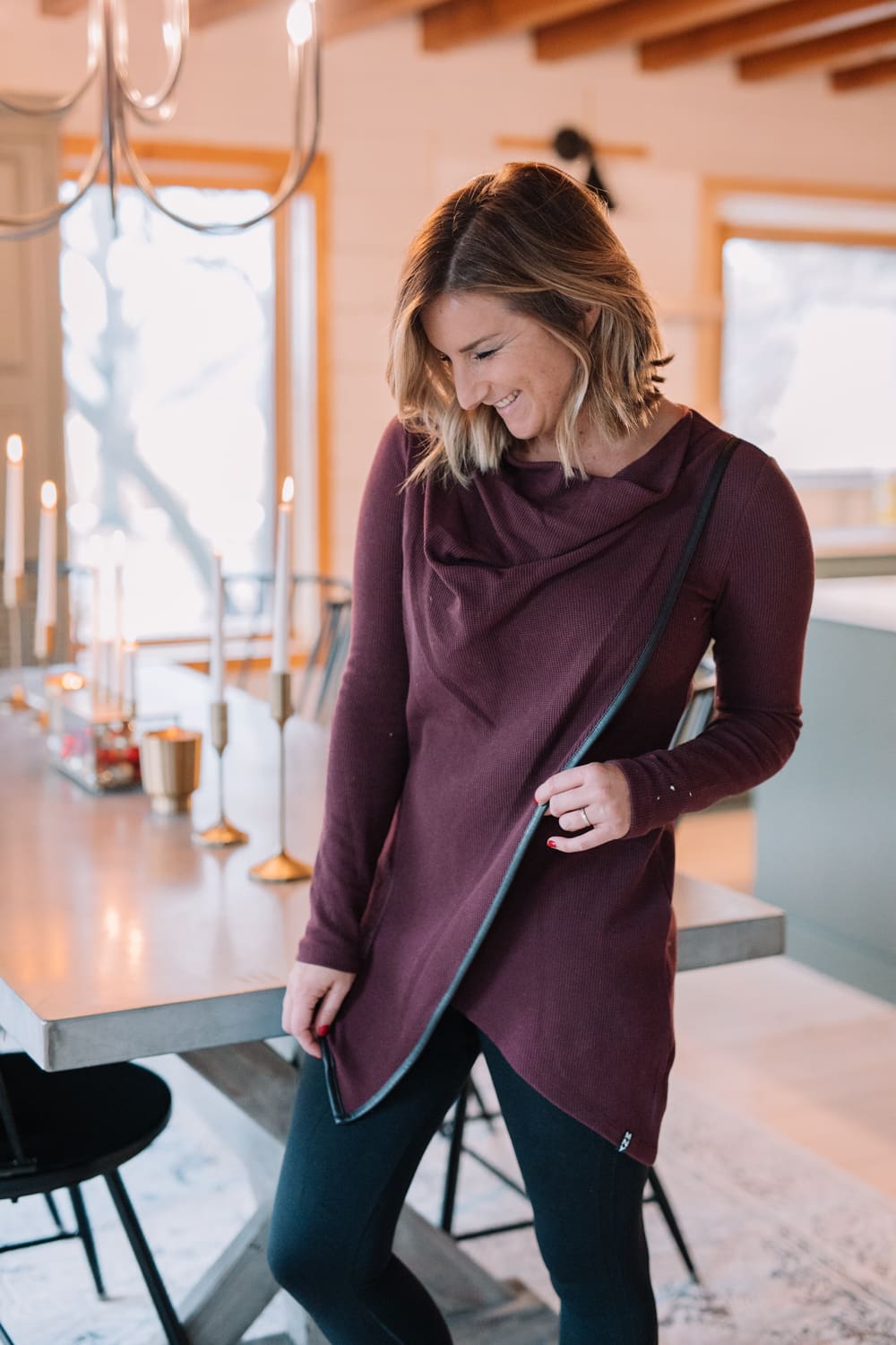 Saving one of my favorite feast-ready looks for last! There’s just something about a drape front tunic that screams “Eat a full-course meal in me”. The asymmetrical draping adds a flattering touch perfect for all the holiday treats. Sure, I might feel like a stuffed turkey, but at least my outfit is far from it.