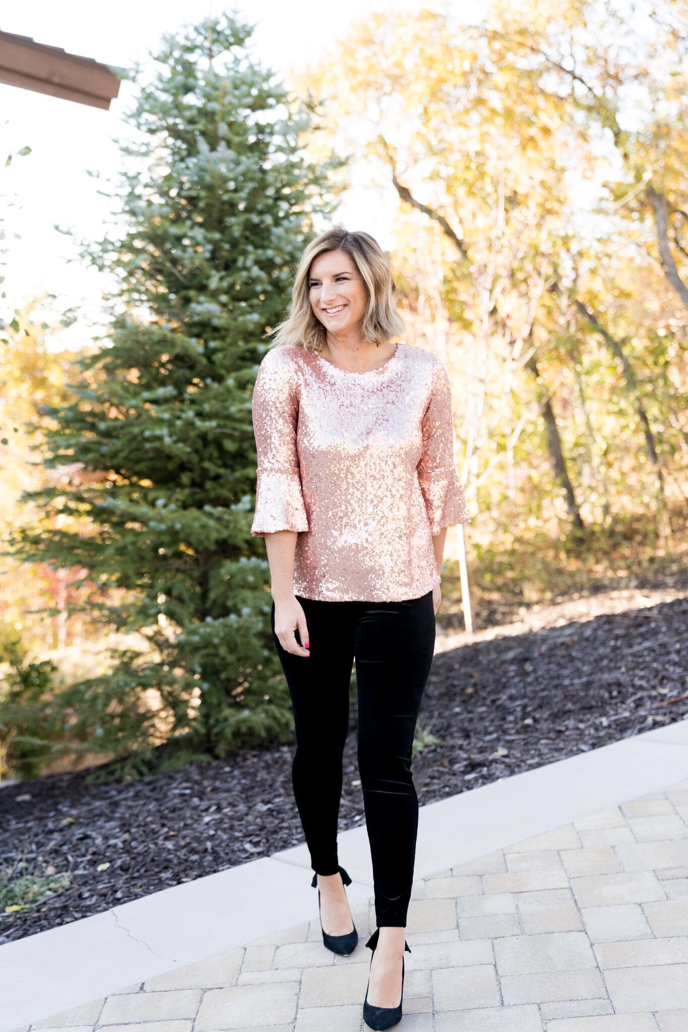 4. Gibson x Living in Yellow Sequin Bell Sleeve Top [true to size, wearing in small]