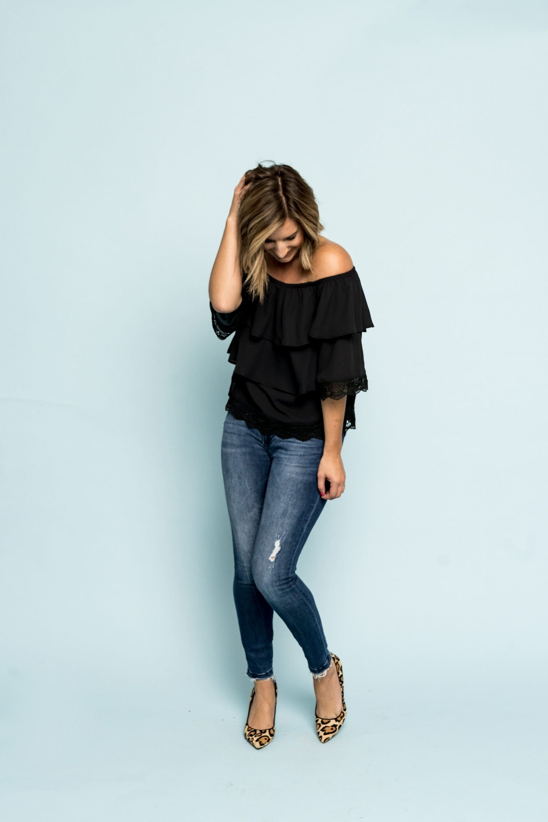 10. Gibson x Mom In Style Tiered Off The Shoulder Lace Detail Top [true to size, wearing in XS]
