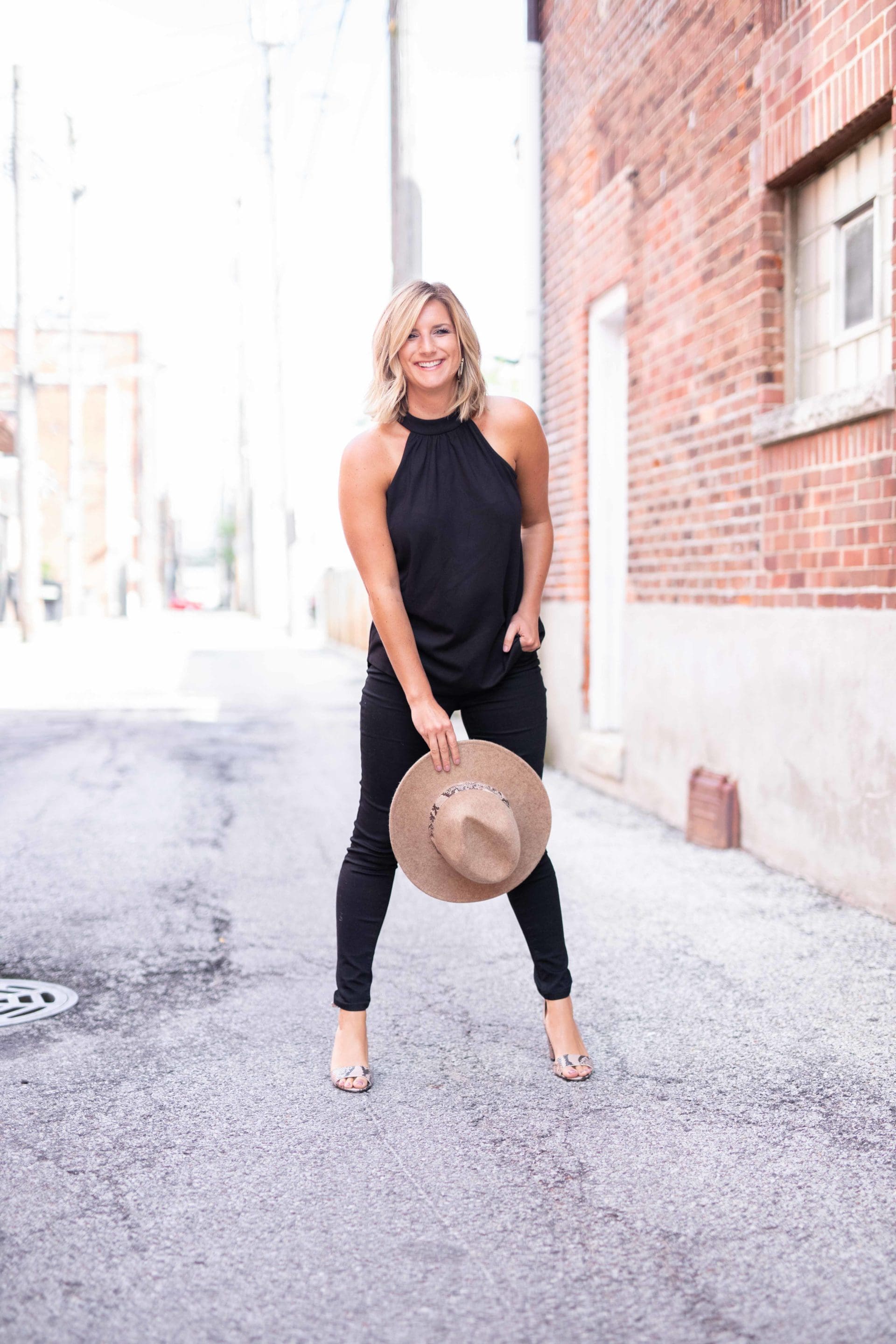 Gibson Date Night Halter Top [size down if in between] // Wit & Wisdom Jeans [size down one] // Vince Camuto Heels