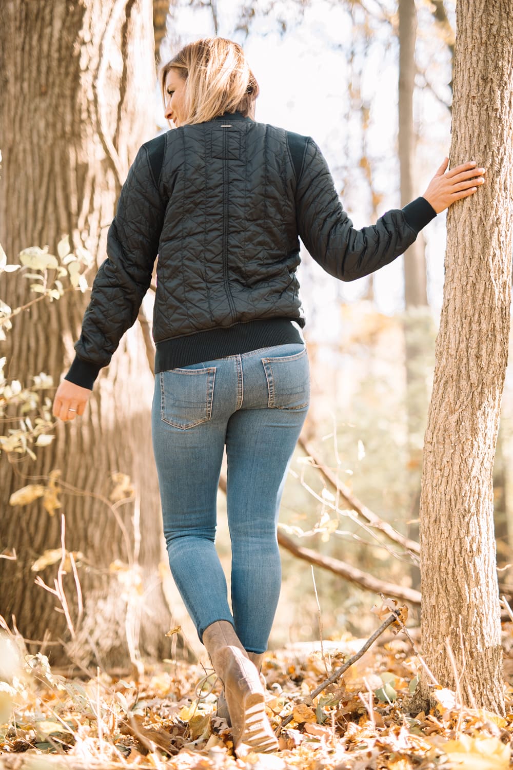 Prana Diva Varsity Jacket [size up if in between, wearing size small] // similar jeans [dish Heritage Blue High Rise Skinny Jean] // Sorel Joan Of Arctic Wedge II Boot [TTS]