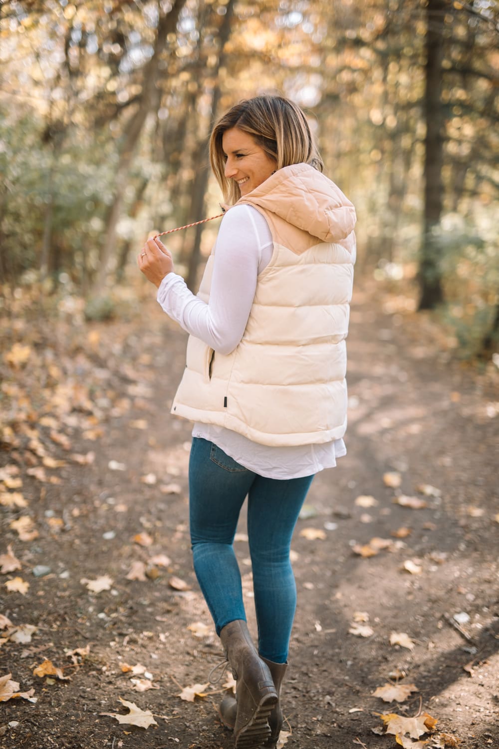 Some days the temps make it up into the 50s and we like to pretend it’s Spring and not wear a coat. That’s where this vest comes into play. The two-tone color, the patterned strings, the longer back, and the epic warmth make this vest the ultimate layering piece for those in-between days! Put it on over a simple long sleeve tee with a pair of jeans or leggings, and you’re ready to get your hike [or your brunch] on!