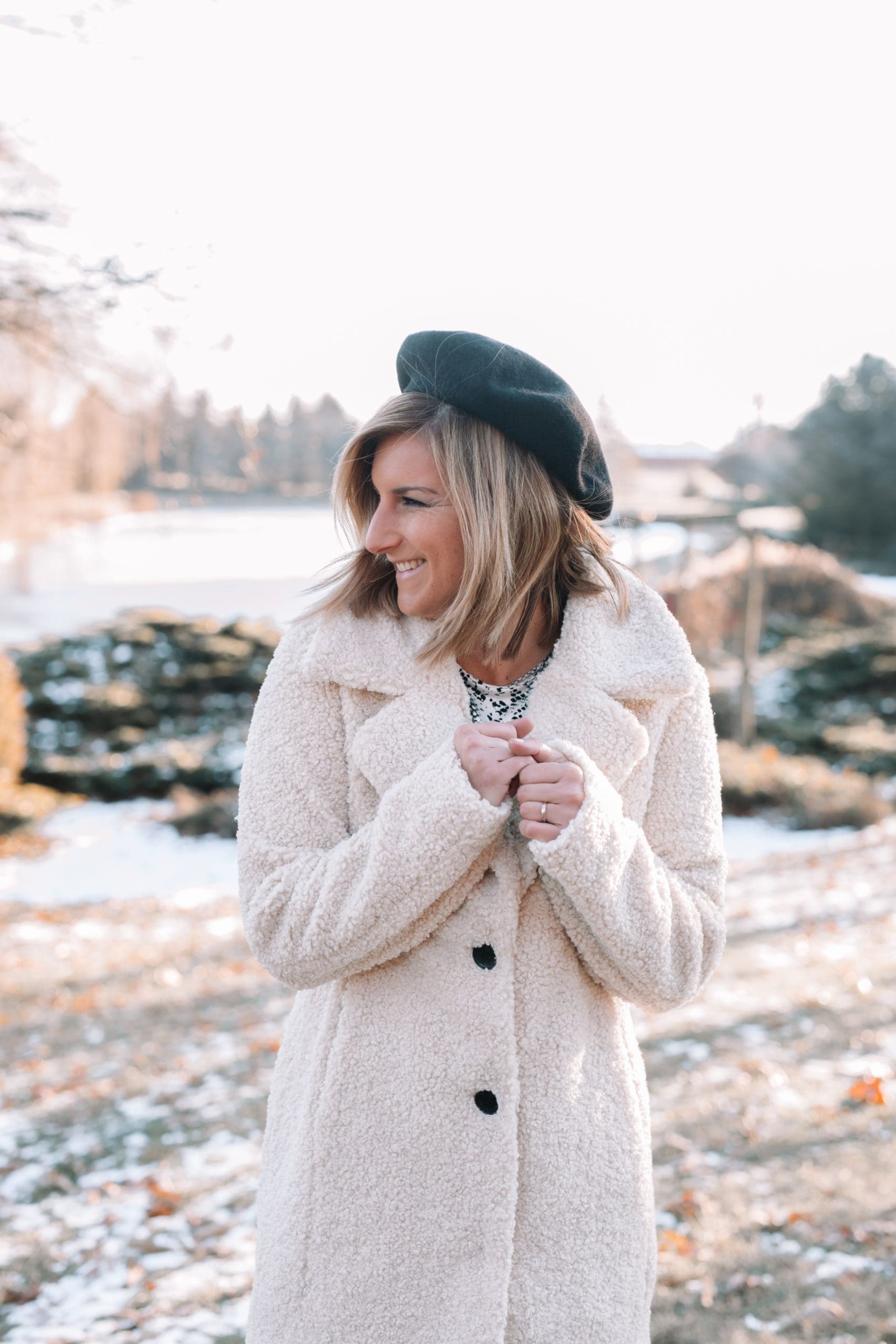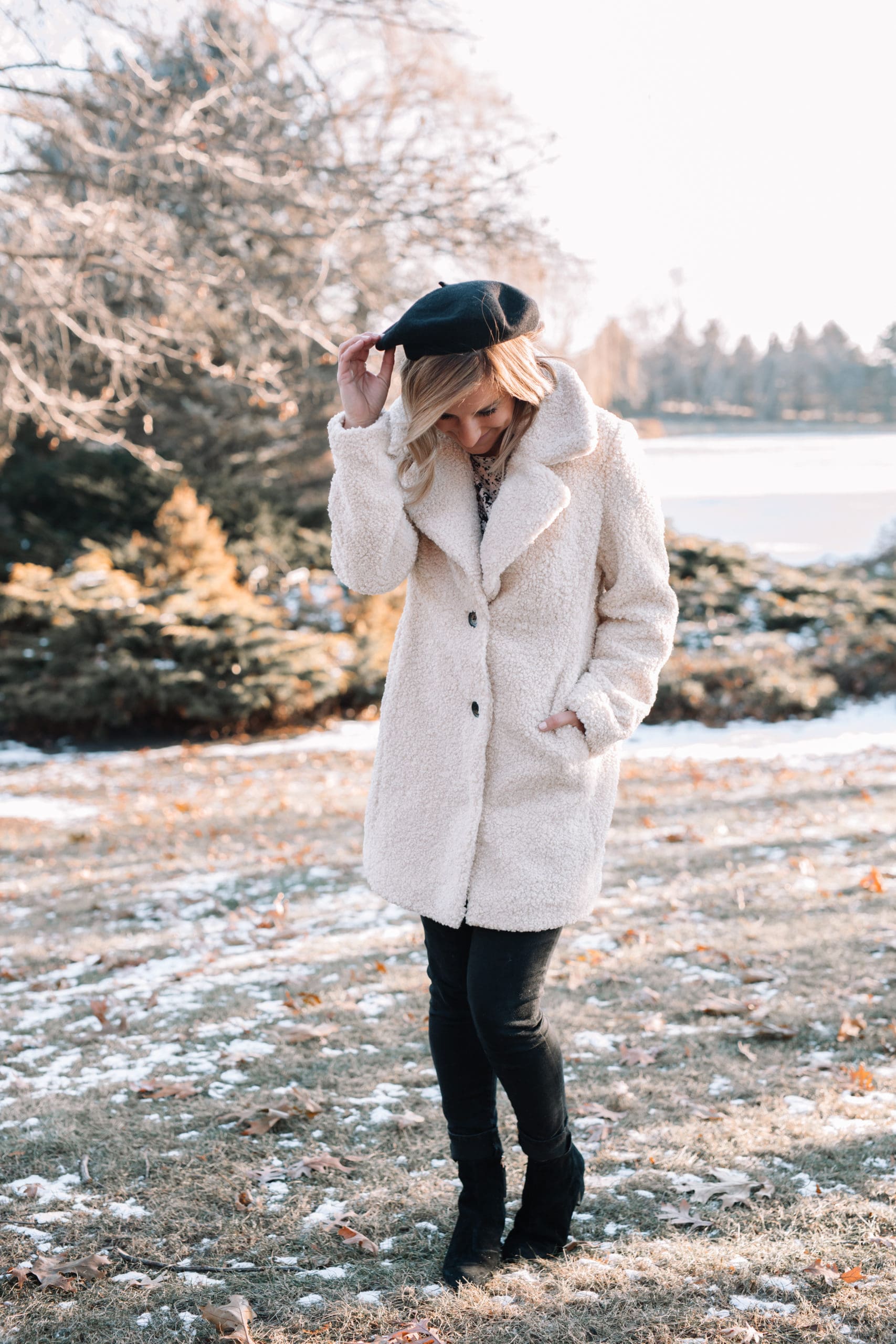 Teddy coats are on trend again this Winter, and I’m 100% okay with this super cozy trend. If I can go out in public feeling like I’m wearing a blanket while looking put together, I call that a win! And let’s not forget this hat that immediately makes me want to book a trip to Paris. While it may not keep my head very warm, it sure looks cute! Should I book the trip? I say “oui.”