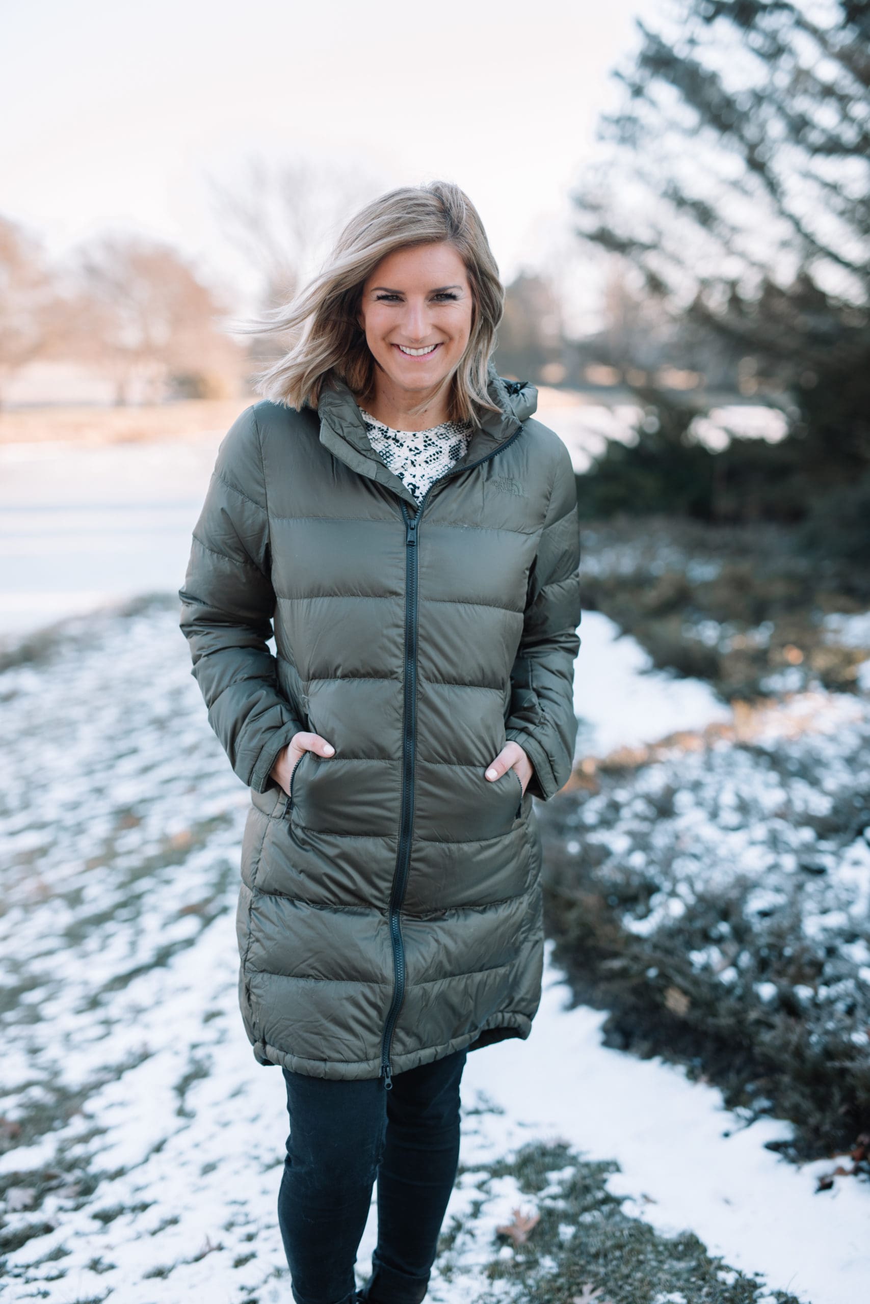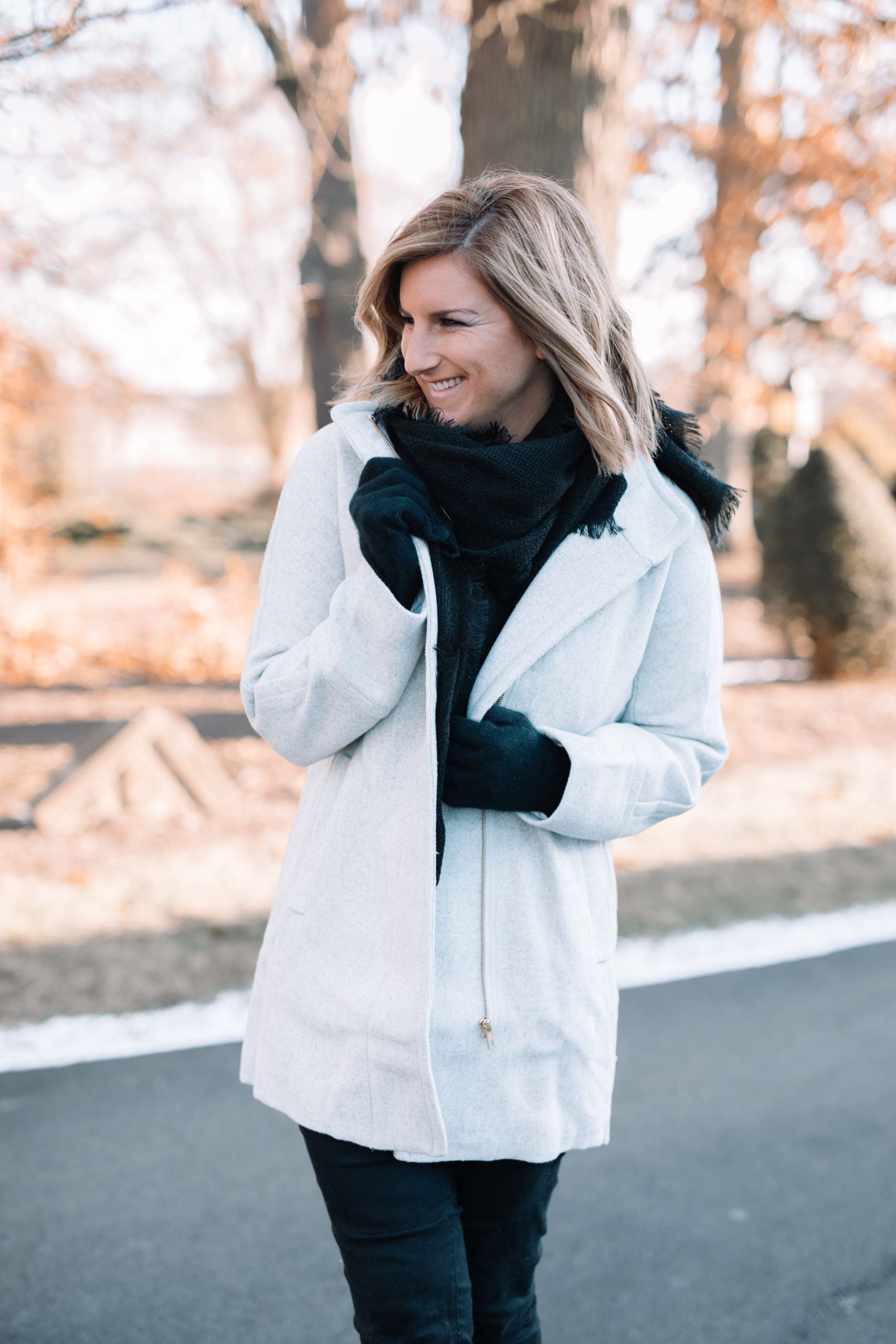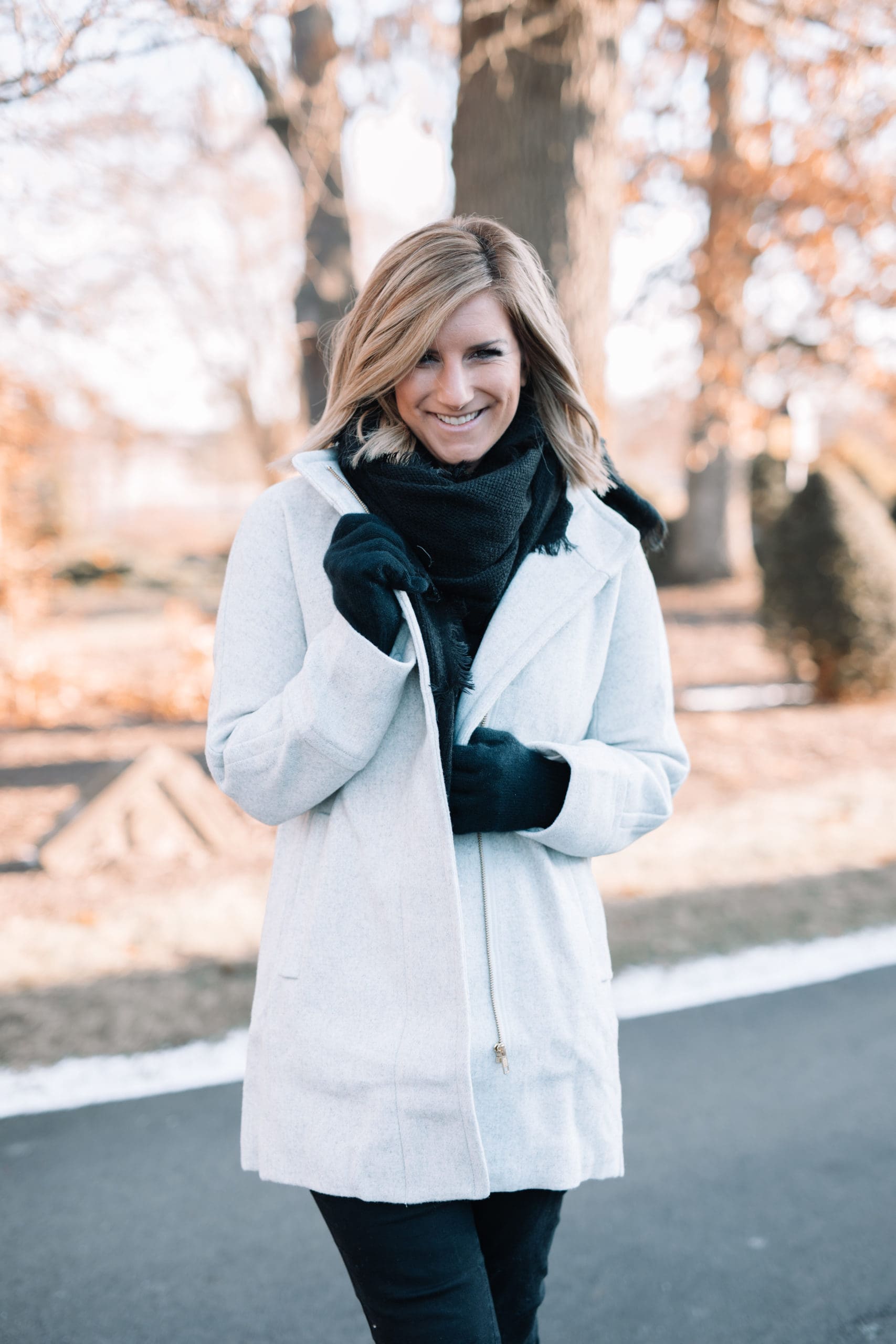 Long, short, casual, dressy, and everything in between! Yep, today we’re talking about all different kinds of Winter coats to get you through the season! While my favorite type of Winter coat comes in the form of a bikini on the beach of a tropical island, I haven’t quite convinced Shawn that running a beach bar is in our near future. So for now, I continue to welcome Winter with [pale, fleece covered] open arms and find joy in the gorgeous white snow. If you followed along on this week’s Instagram stories, you learned that while I am a fan of the snow, I am certainly not a fan of the ice [I’ll let you in on a secret: my video doorbell caught my falling… HARD]. Apparently we need to invest in some more ice melt ASAP. I digress…