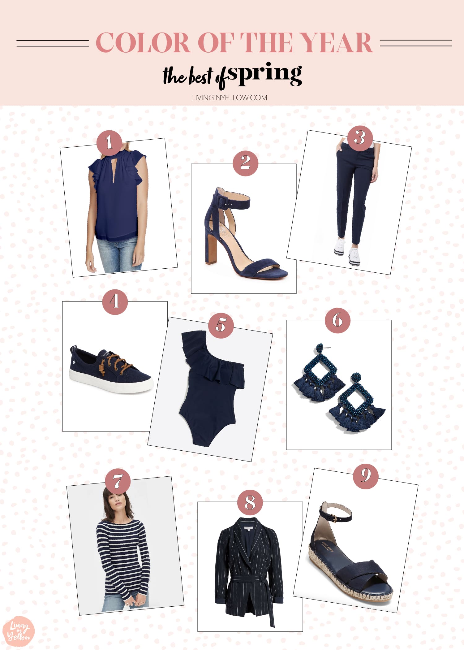 Every year, Pantone selects a color, and deems it the “color of the year.” This year’s color is Classic Blue which is described as the sky at nightfall. Whether that is your sky or you prefer your sky more on the pinks and reds side [like I prefer my wines], Pantone calls the shots, and we run with it! Here are a favorite blue pieces to rock this Spring.