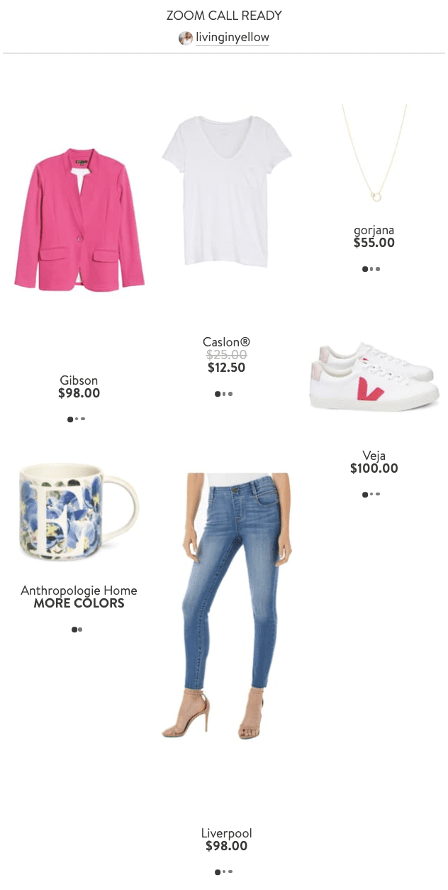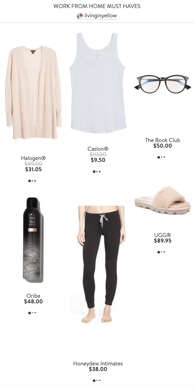 Another thing that’s keeping me entertained during this time is getting creative with how I shop [since we’re not heading in store much anymore]. I recently had fun putting together “looks” with Nordstrom, which are sort of like vision boards where you can see the whole outfit come together, from the main pieces to the shoes and accessories! Throw in a great lip color or nail polish to finish it off, and you’re ready to grab and go from your closet [when you can go out again, that is!]!