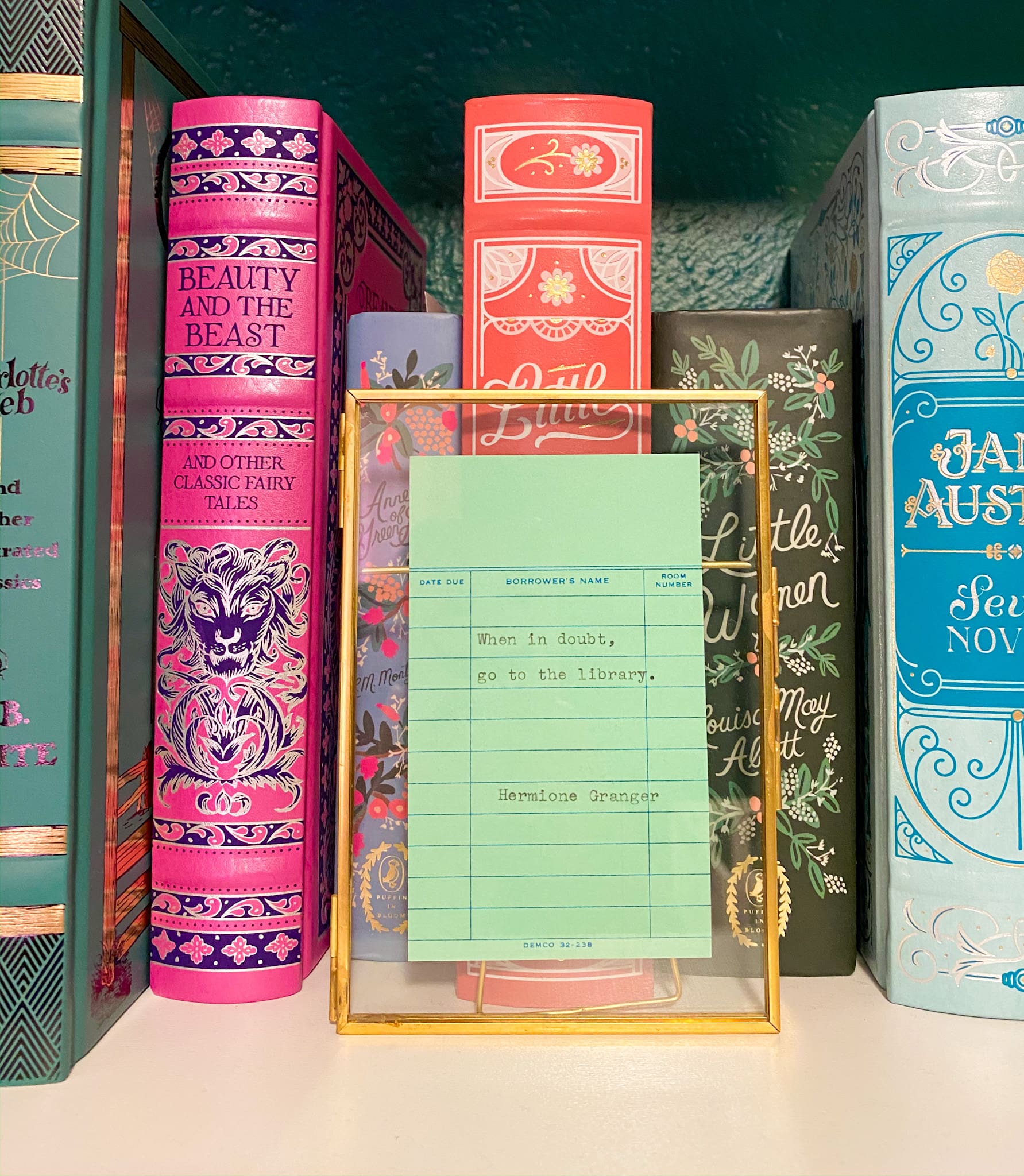 Custom Quote Library Card: Have your library card created with whatever custom quote you’d like to have! Then frame it, stick it, or stand it somewhere!
