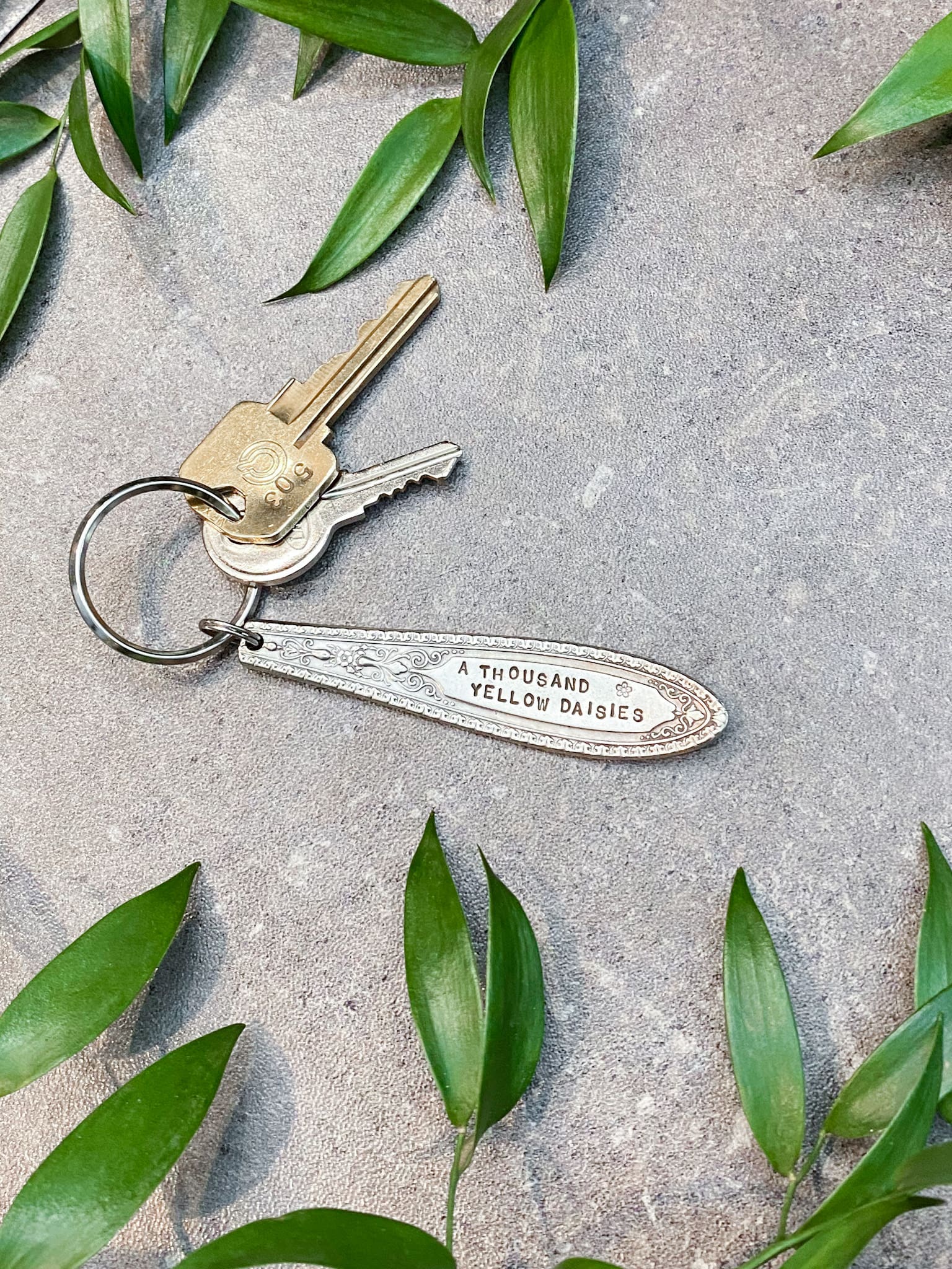 Custom Vintage Spoon Keychain These can be customized to say anything! This one says “A Thousand Yellow Daisies”
